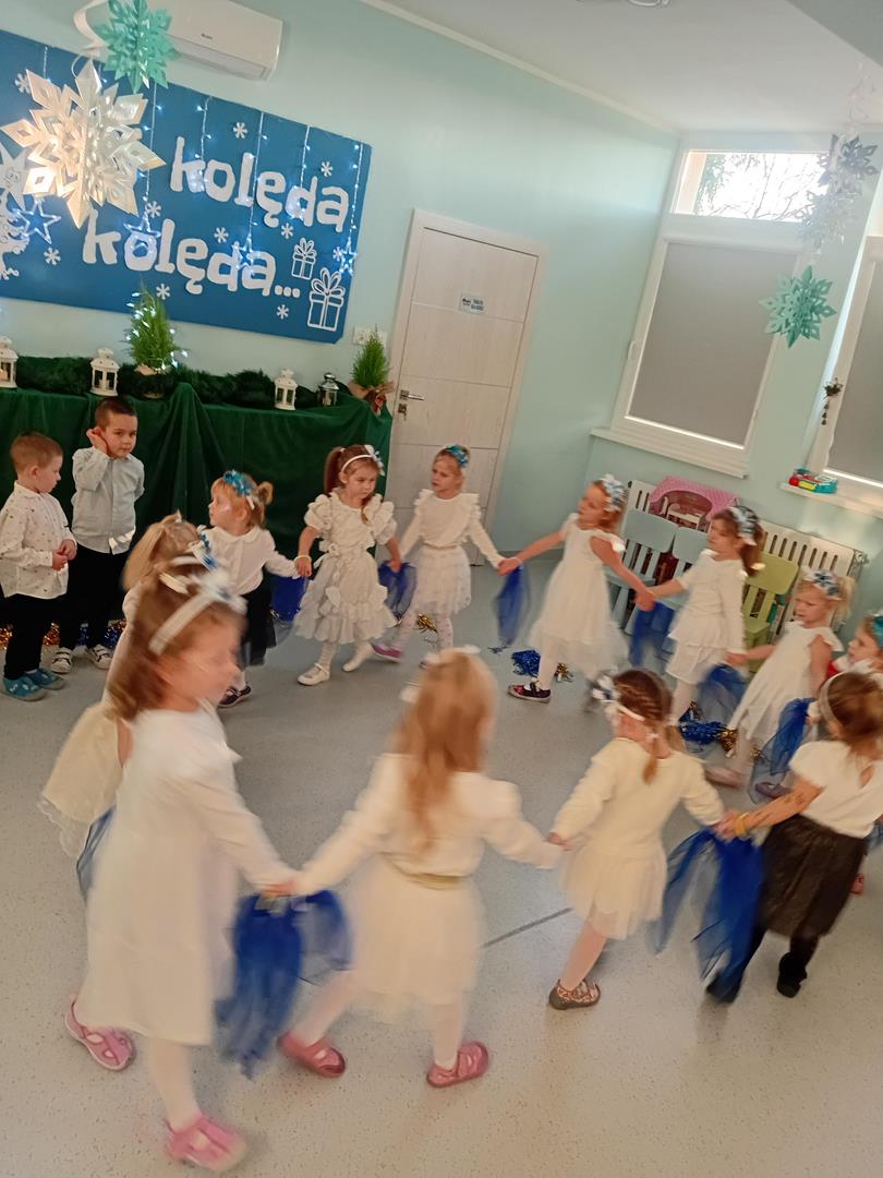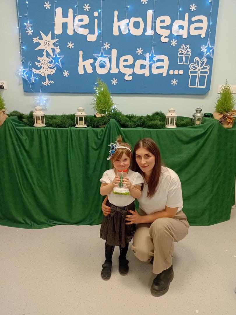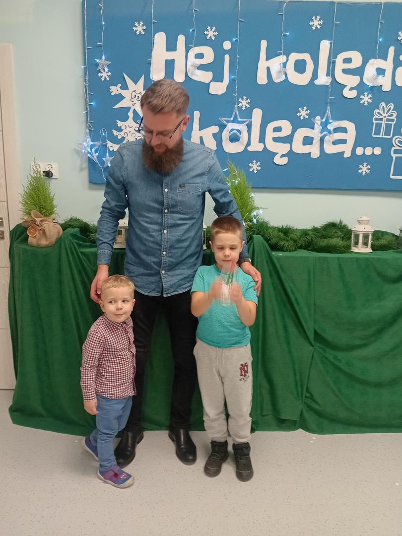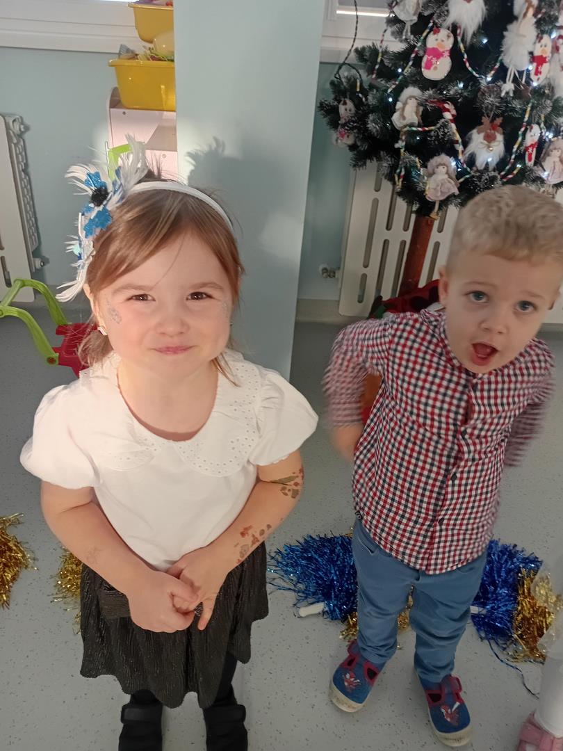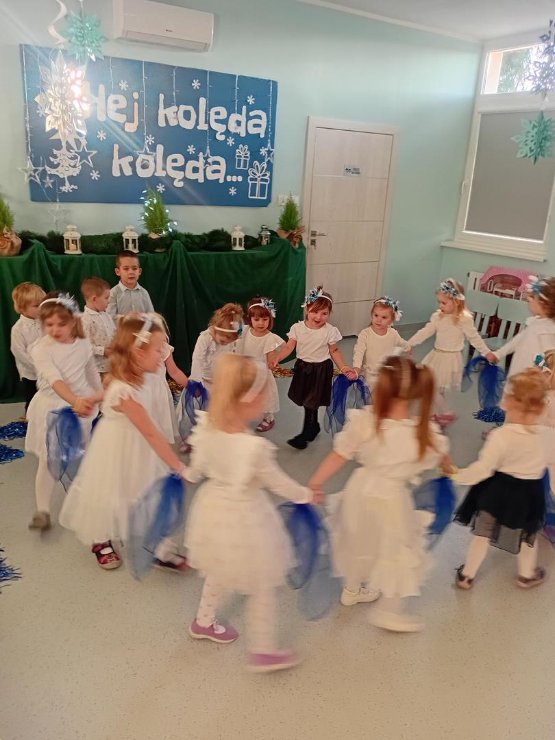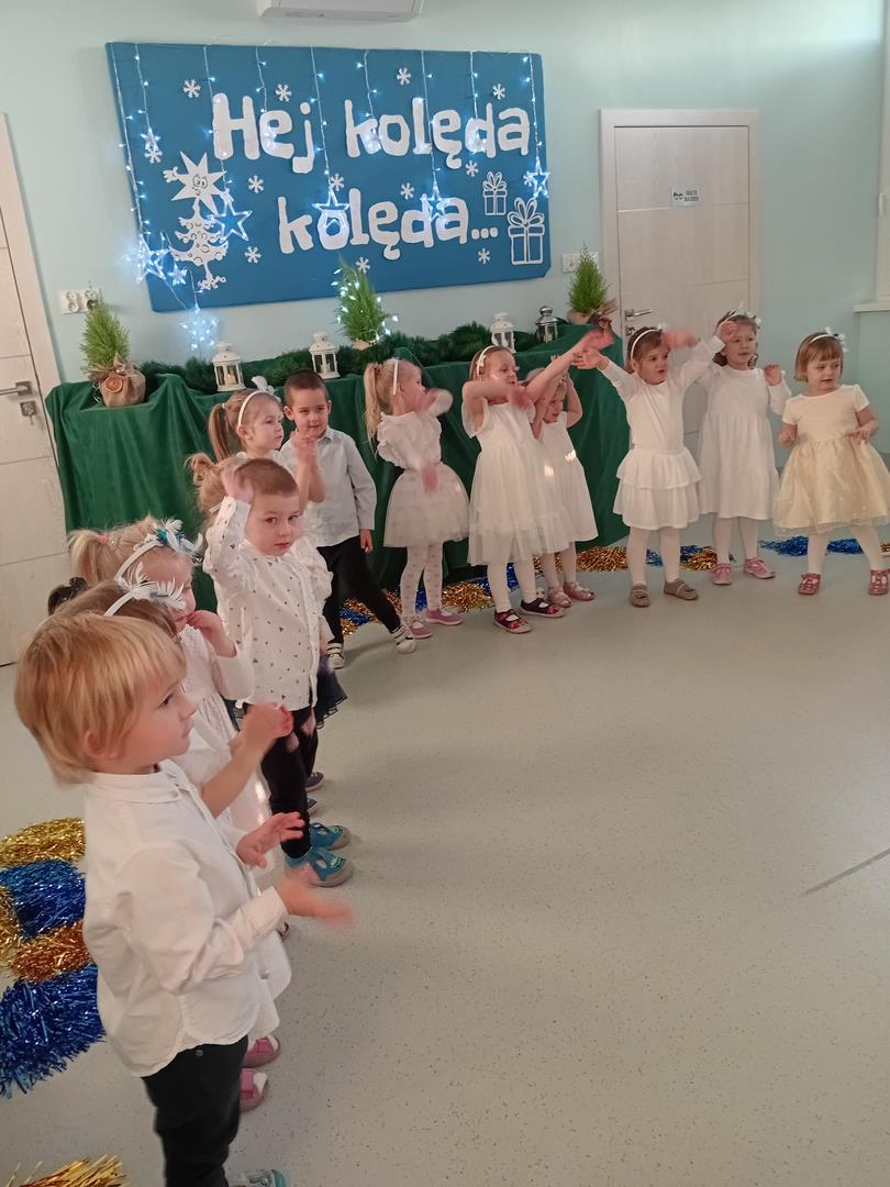 W środę odbyły się w naszej sali świąteczne warsztaty. Na początku przenieśliśmy rodziców do magicznej zimowej krainy, pozjeżdżaliśmy na saneczkach i nawet wyczarowaliśmy śnieg. Poczęstowaliśmy gości słodkościami, a na koniec wykonaliśmy wspólnie śnieżne kule.