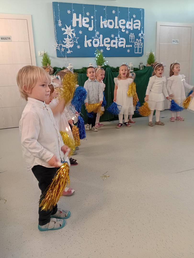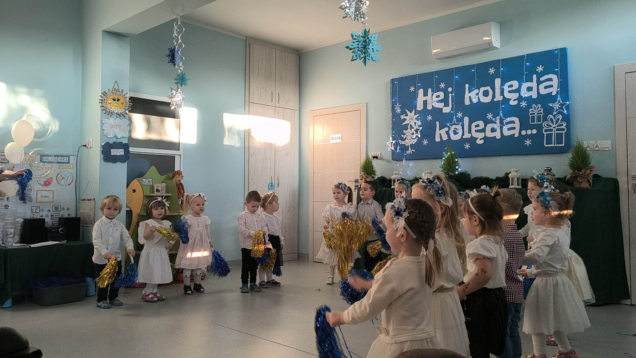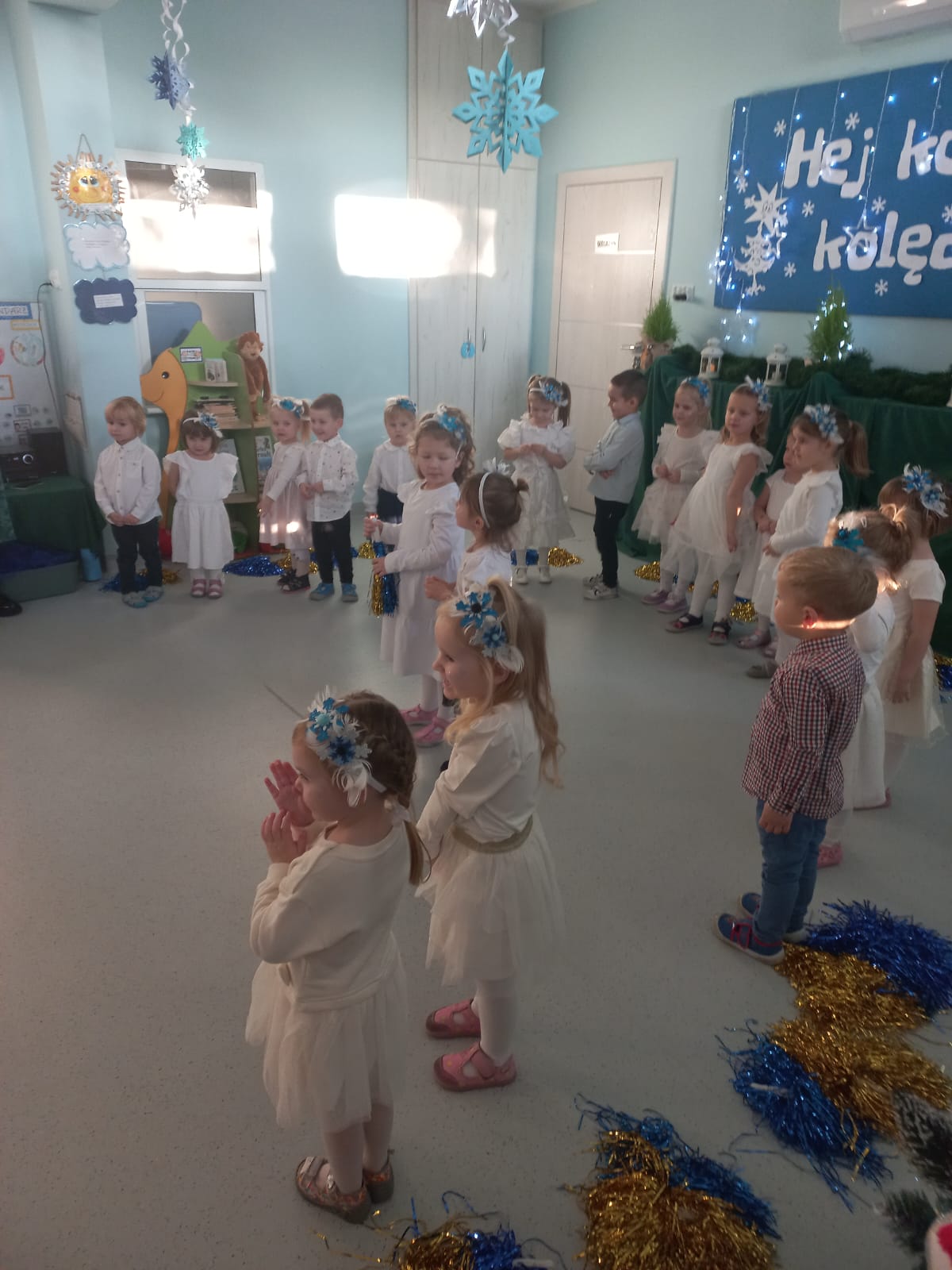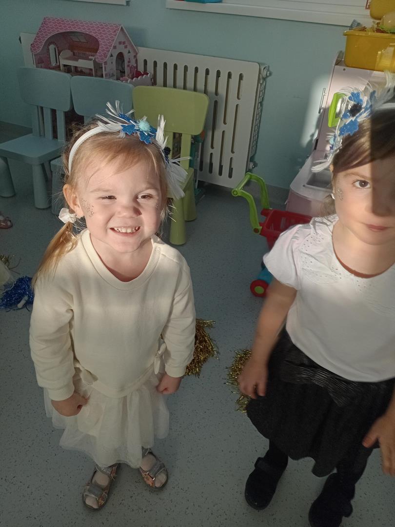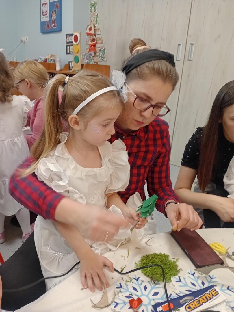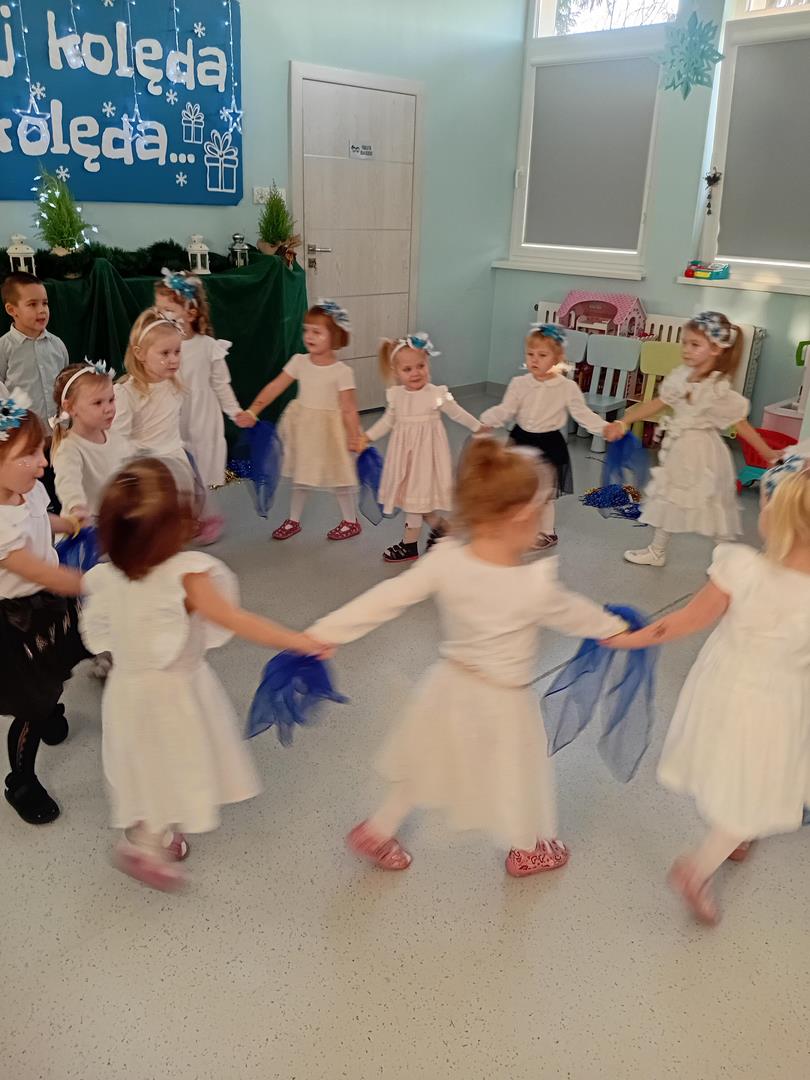 W środę odbyły się w naszej sali świąteczne warsztaty. Na początku przenieśliśmy rodziców do magicznej zimowej krainy, pozjeżdżaliśmy na saneczkach i nawet wyczarowaliśmy śnieg. Poczęstowaliśmy gości słodkościami, a na koniec wykonaliśmy wspólnie śnieżne kule.