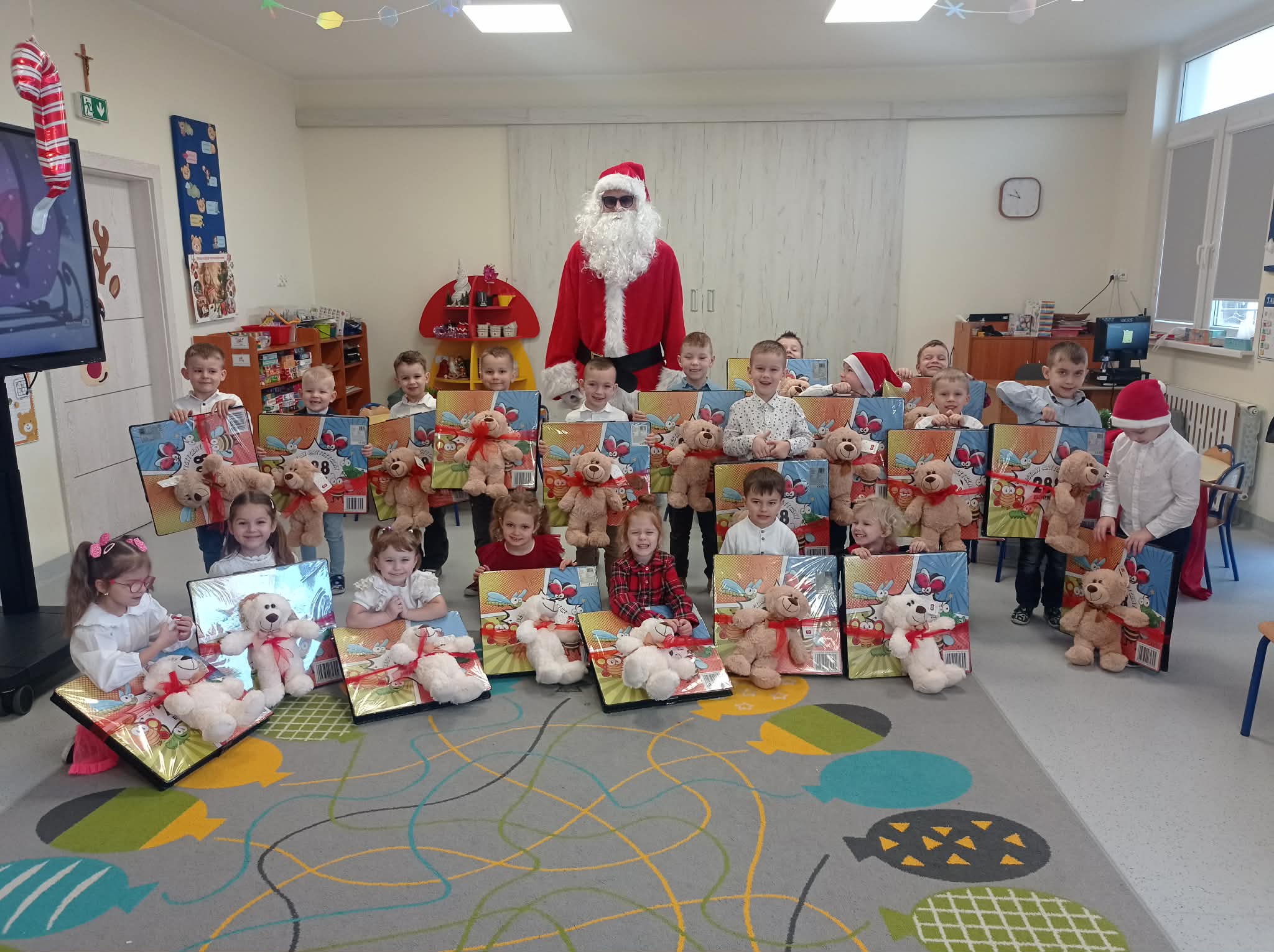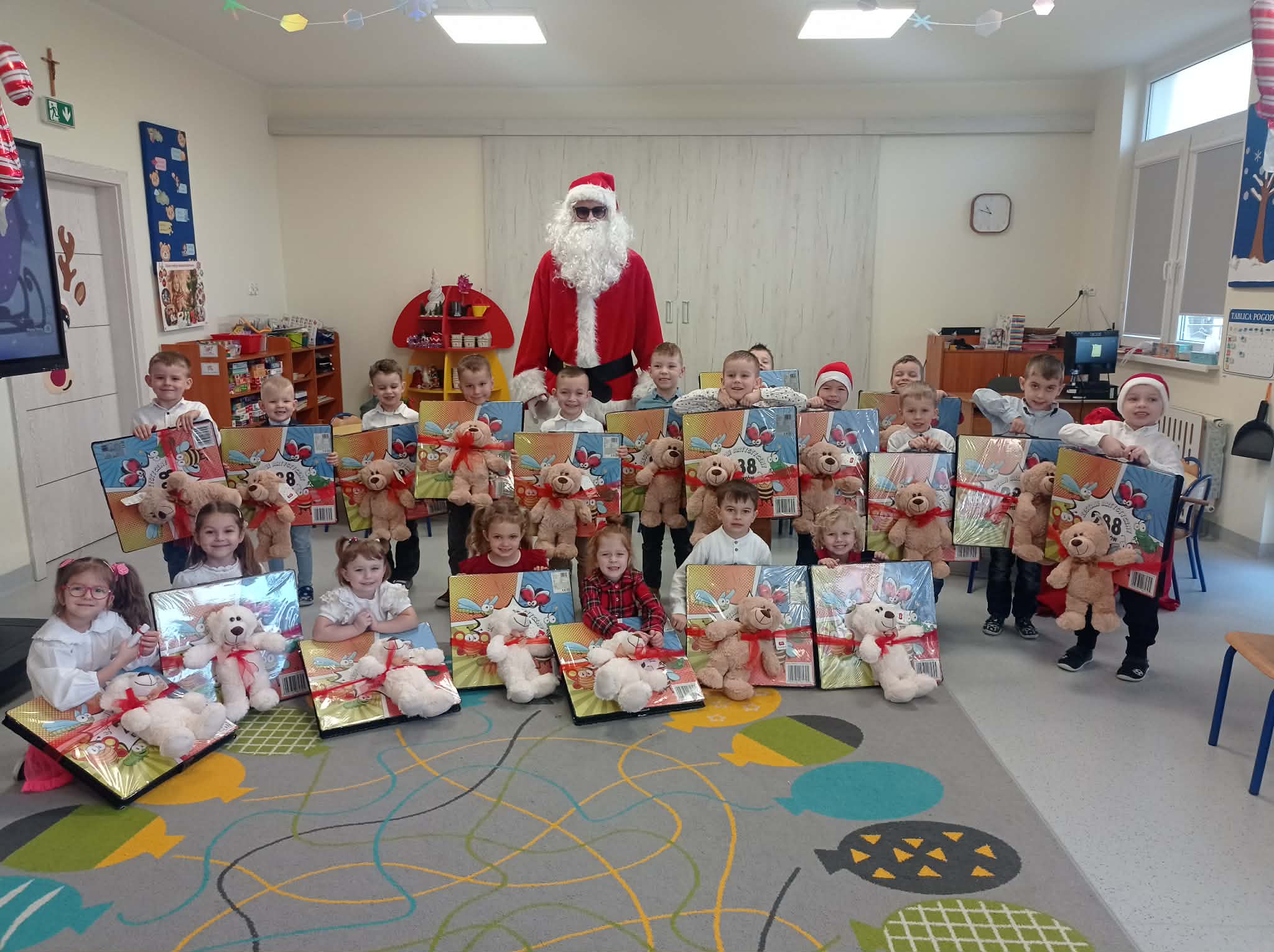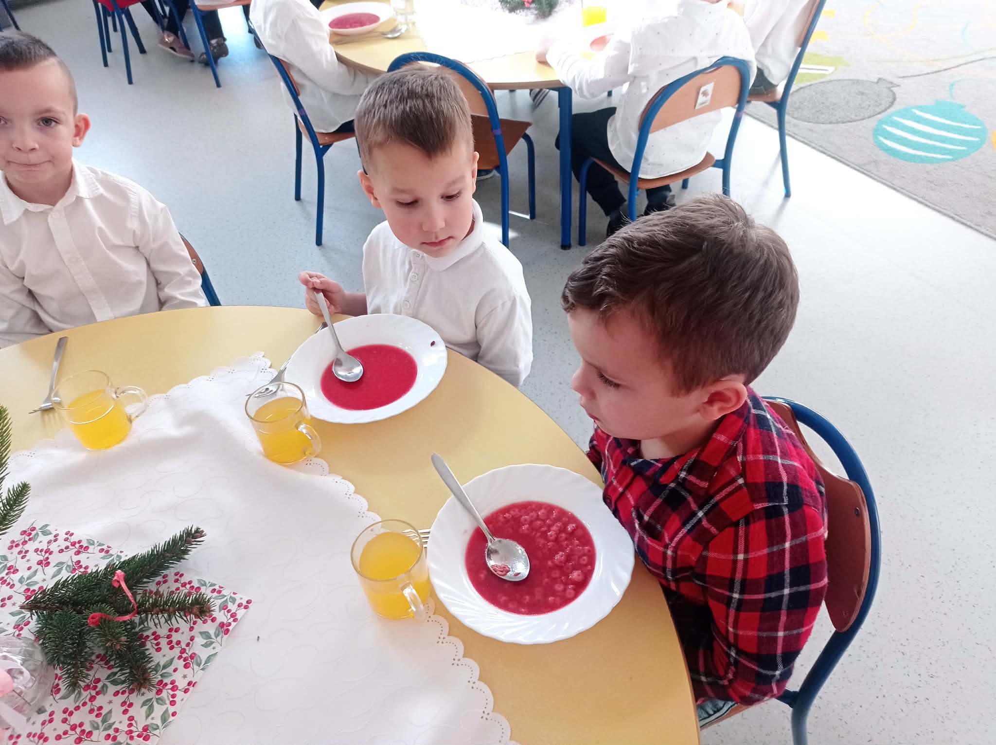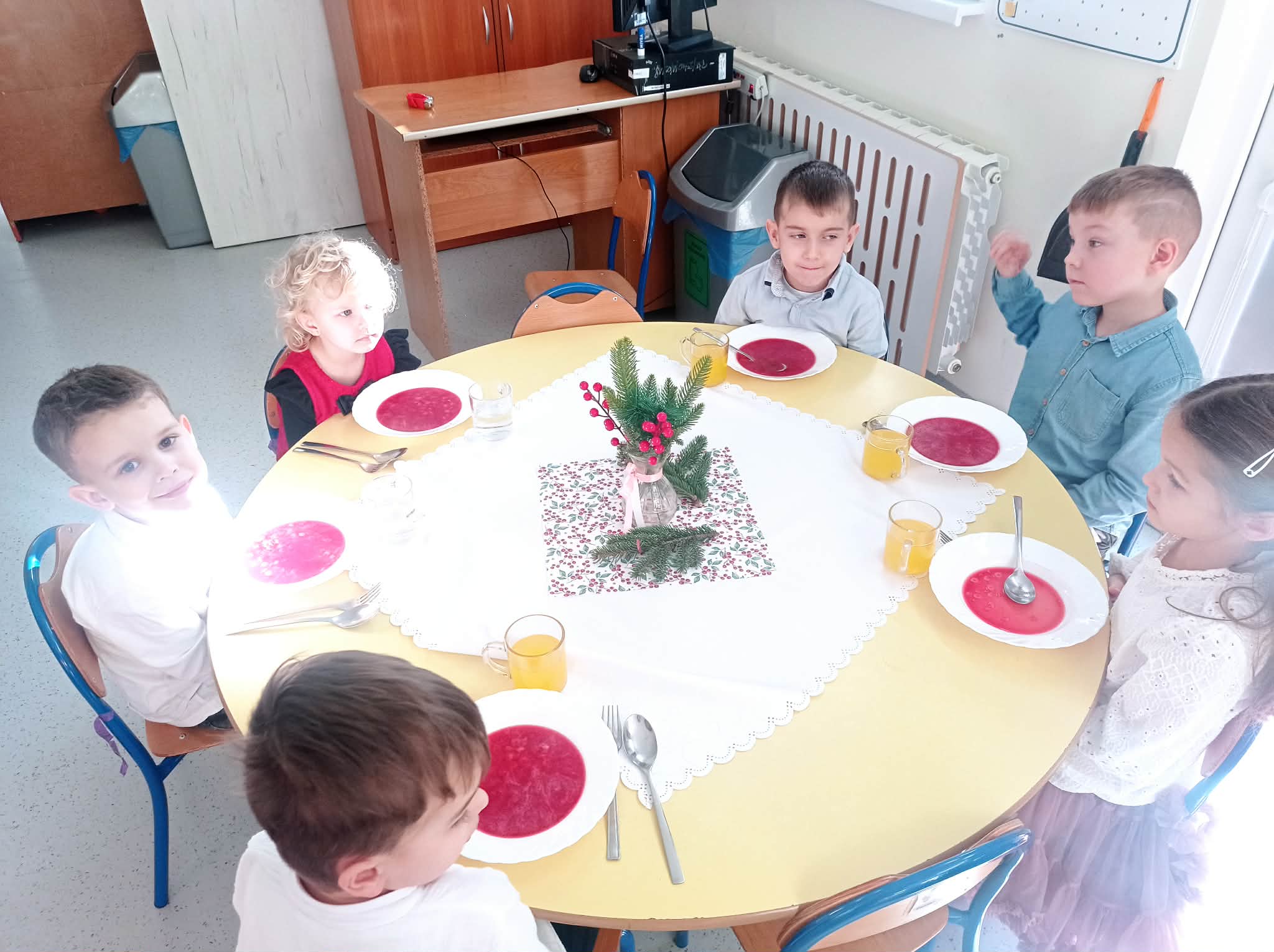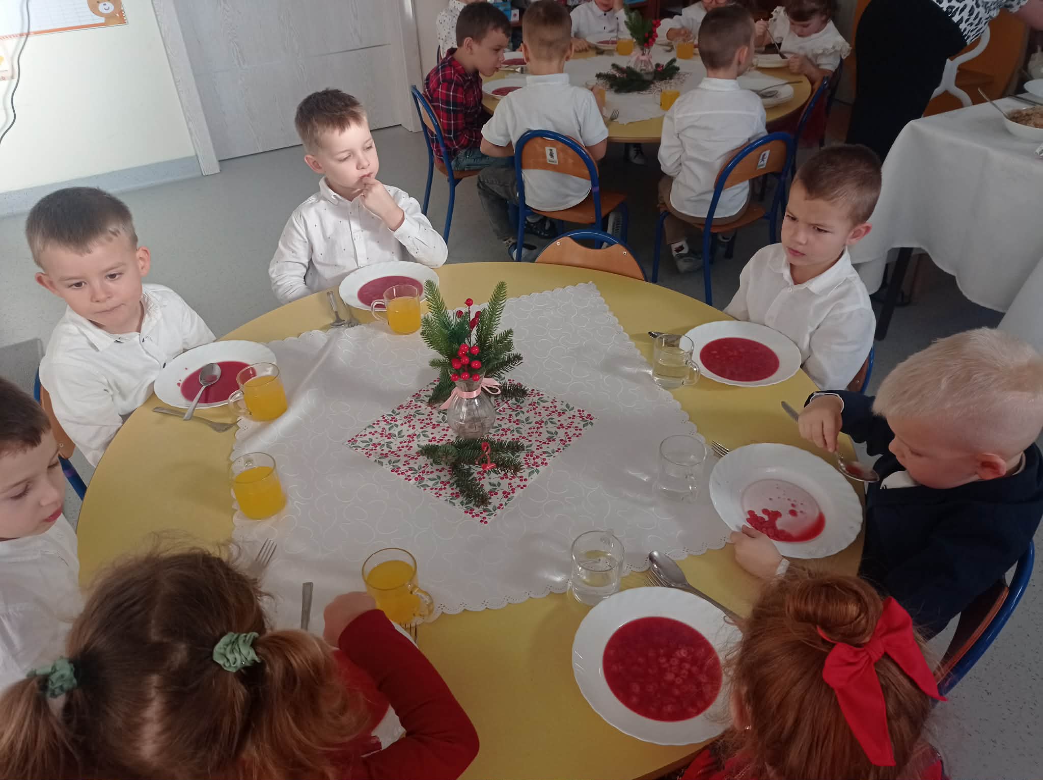 W grupie odbyła się uroczysta Wigilia przedszkolna.Dzieliliśmy się opłatkiem, składając sobie serdeczne życzenia, a wyjątkową radość sprawiły dzieciom odwiedziny Gwiazdora.