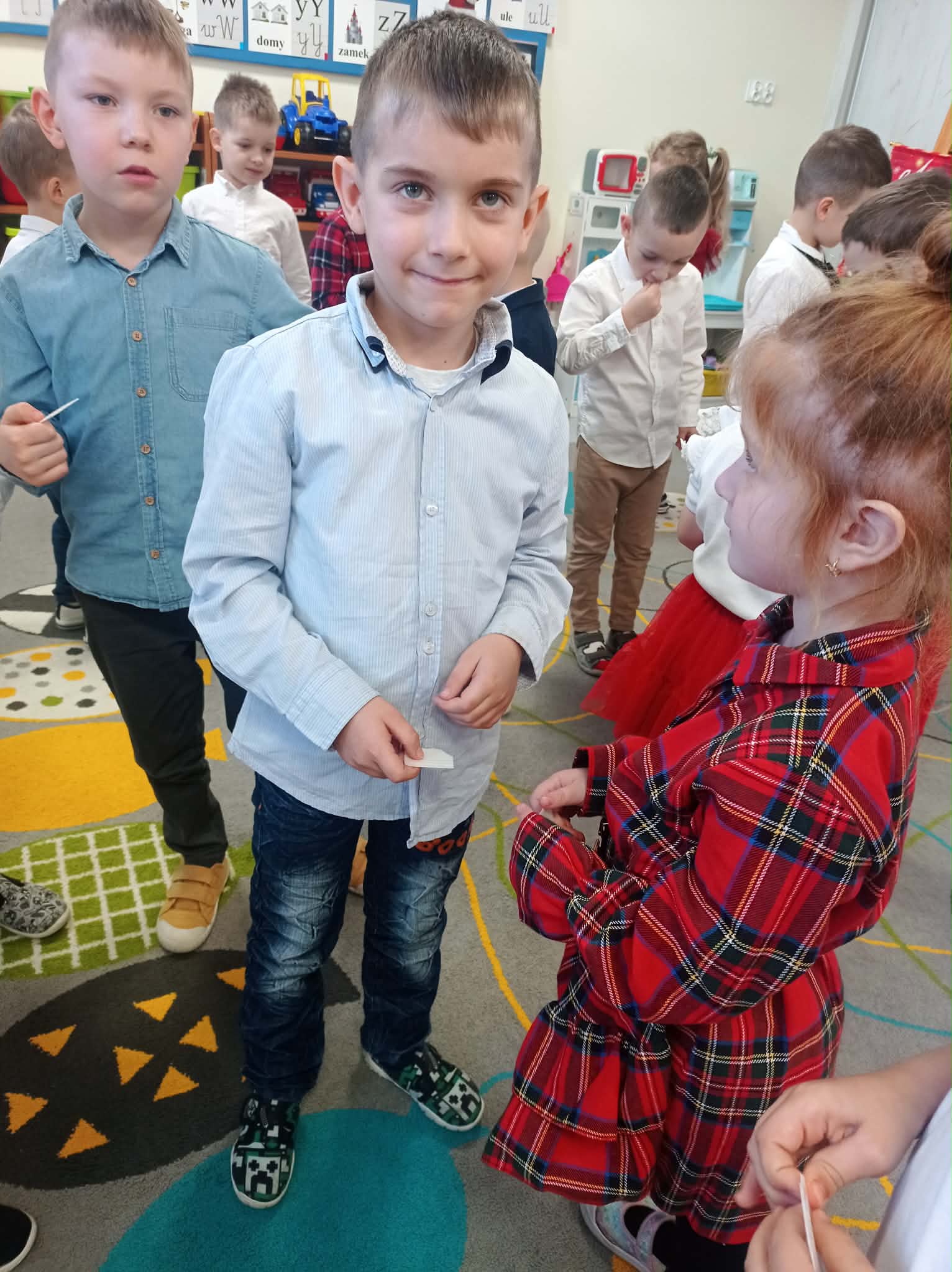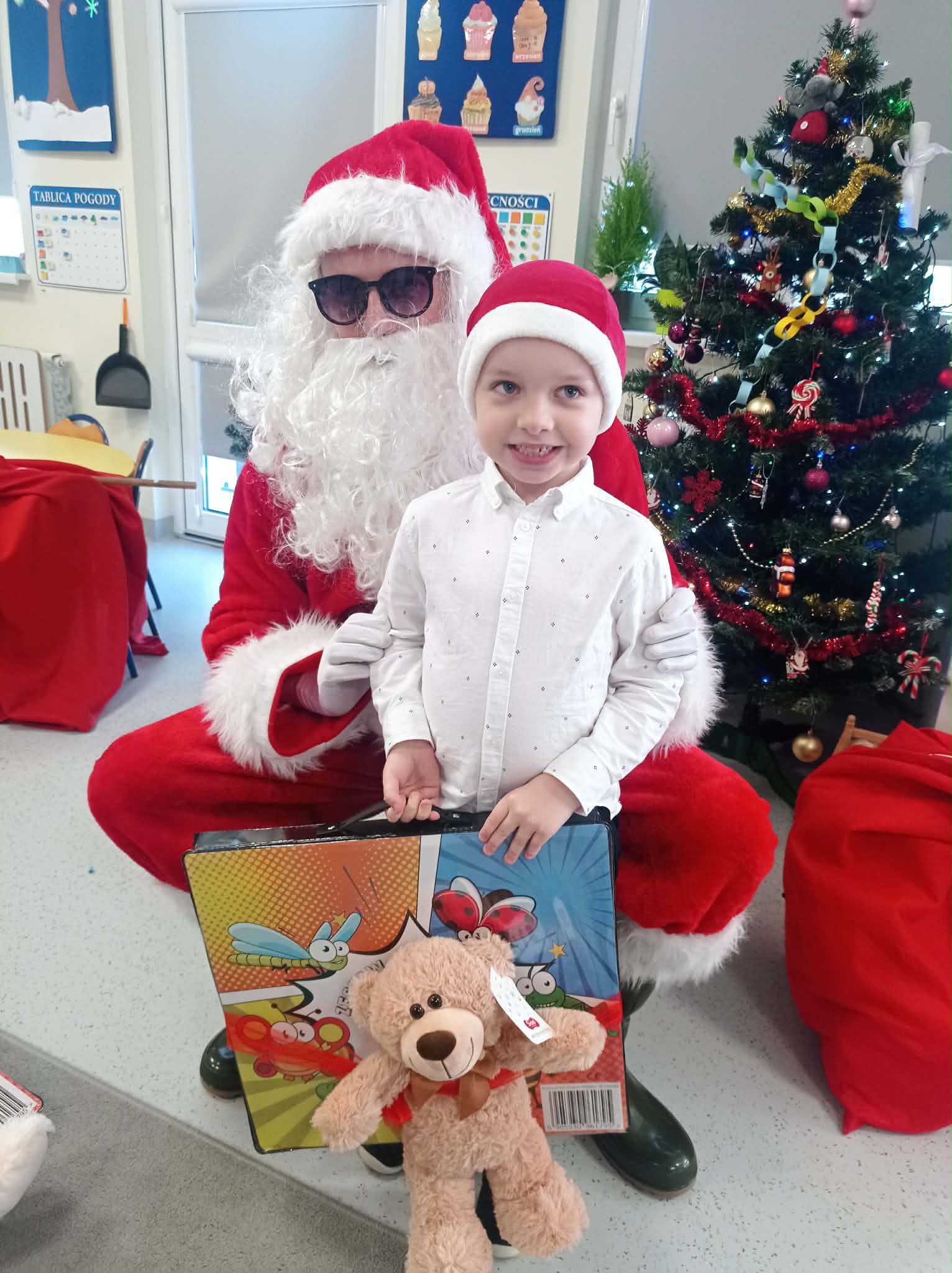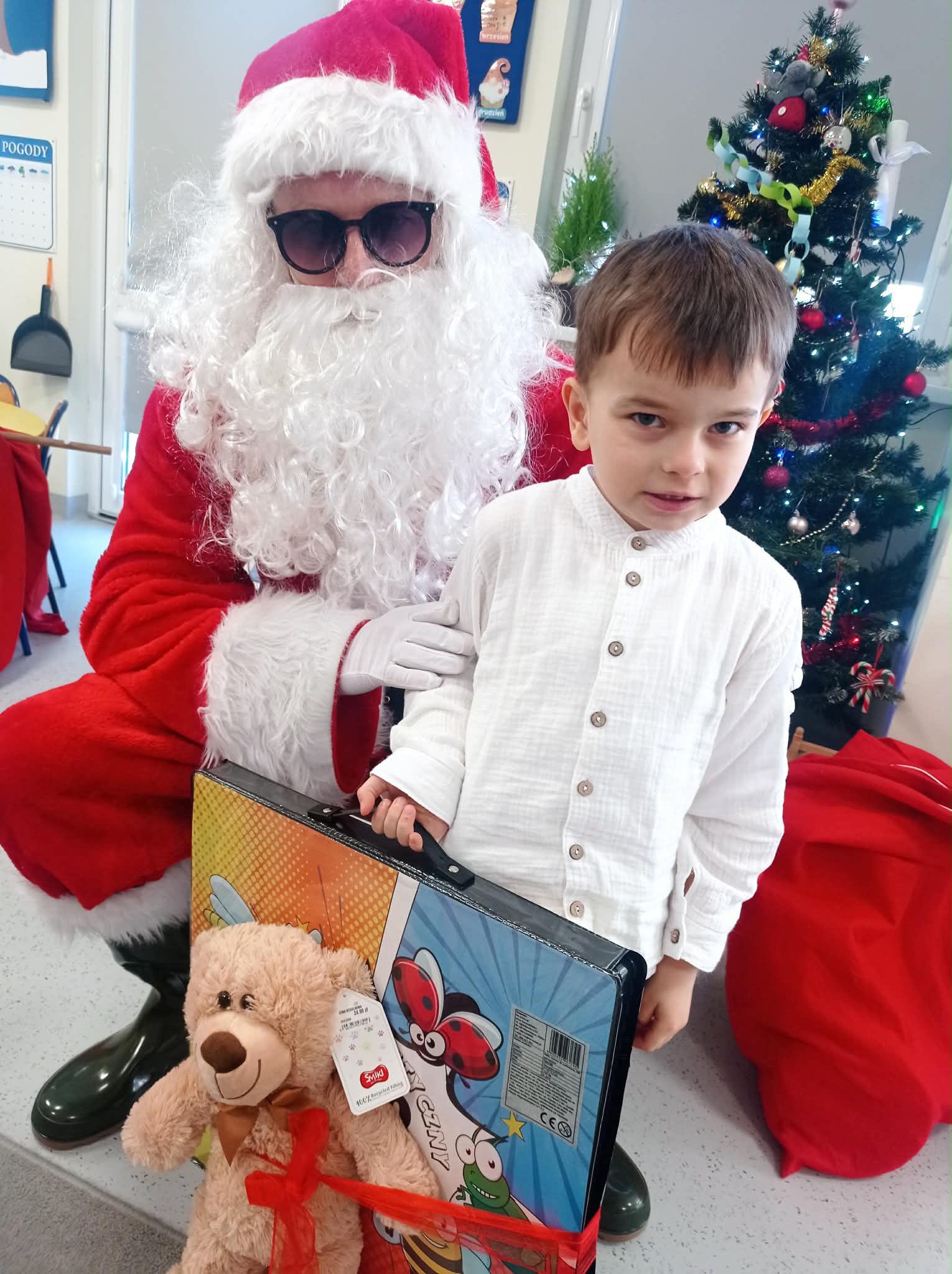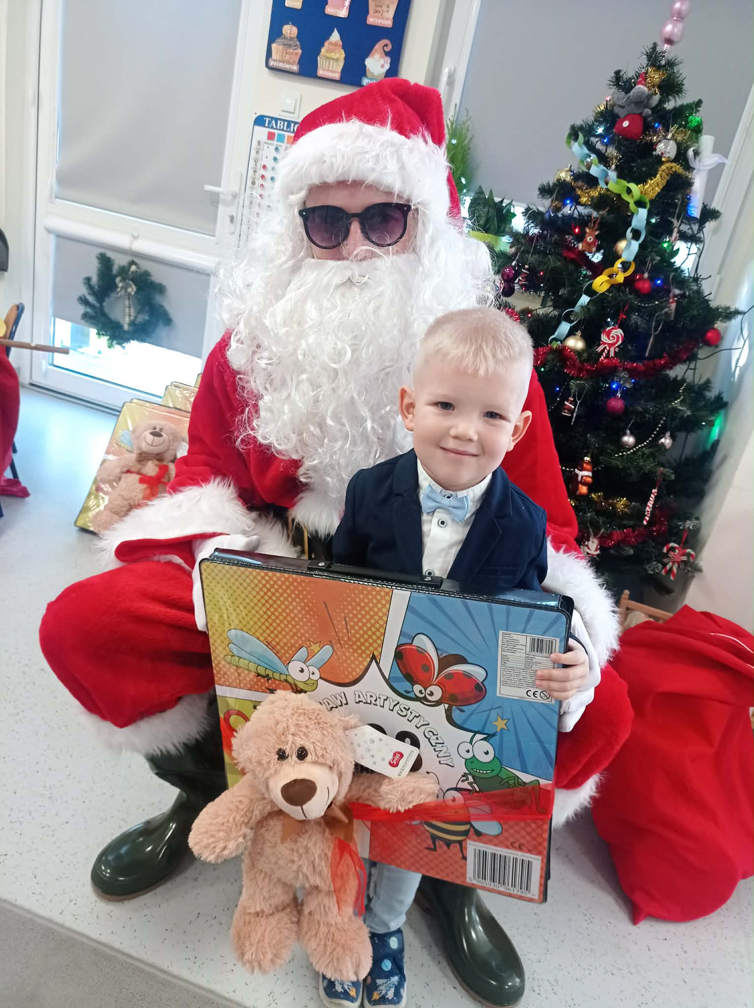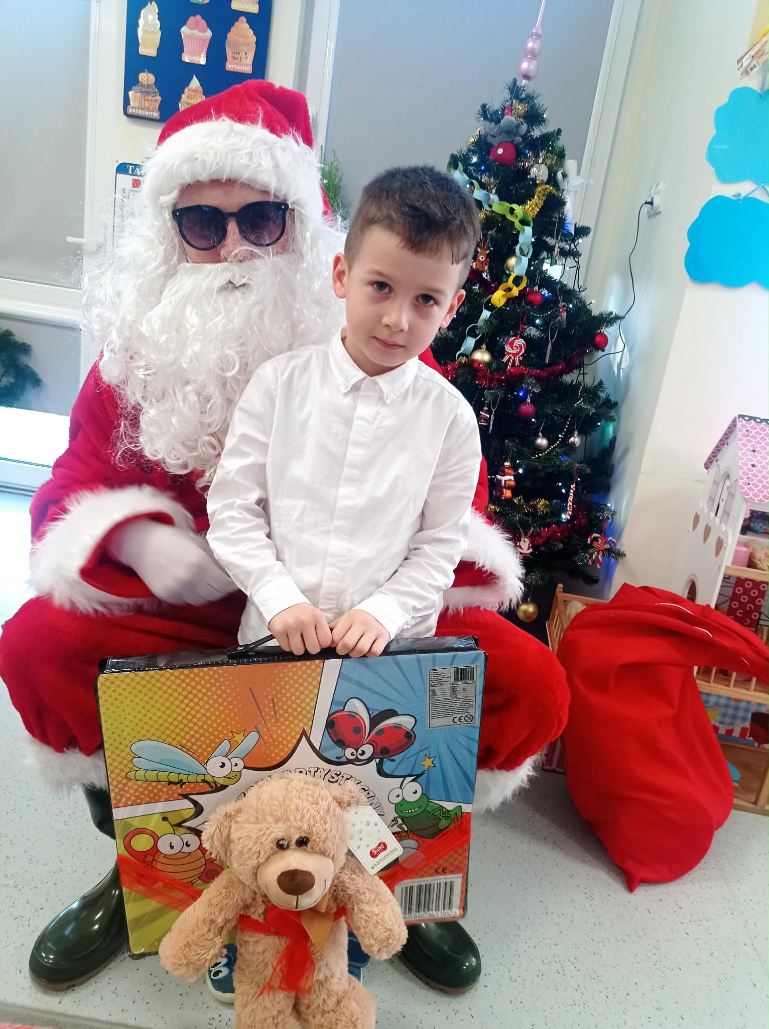 W grupie odbyła się uroczysta Wigilia przedszkolna.Dzieliliśmy się opłatkiem, składając sobie serdeczne życzenia, a wyjątkową radość sprawiły dzieciom odwiedziny Gwiazdora.