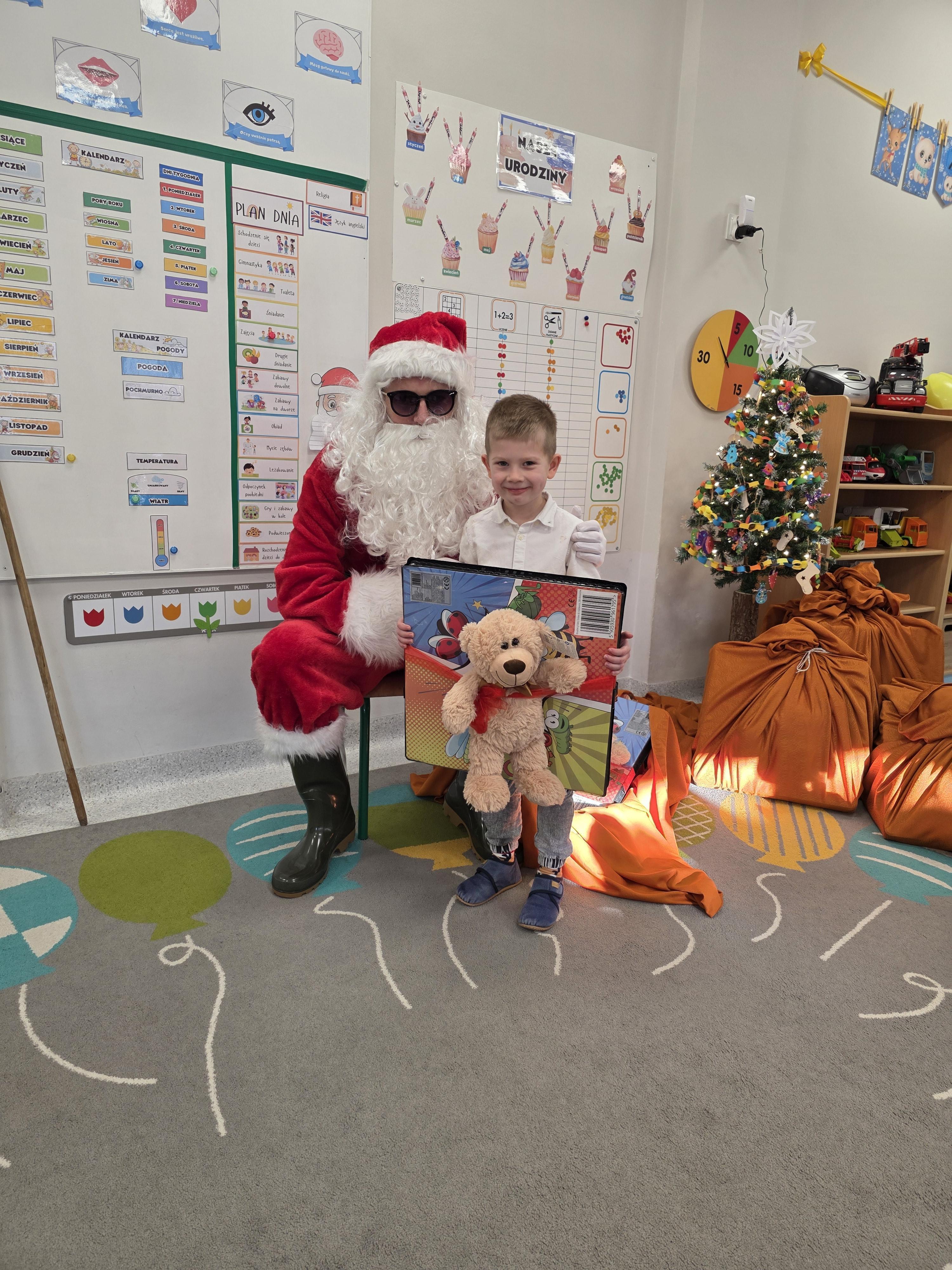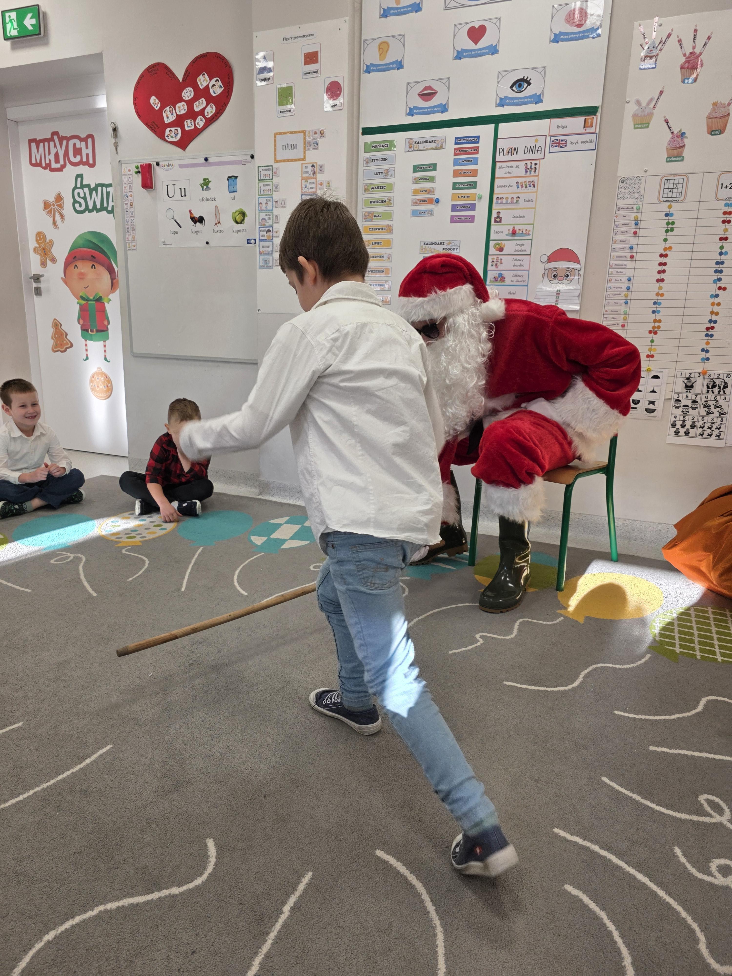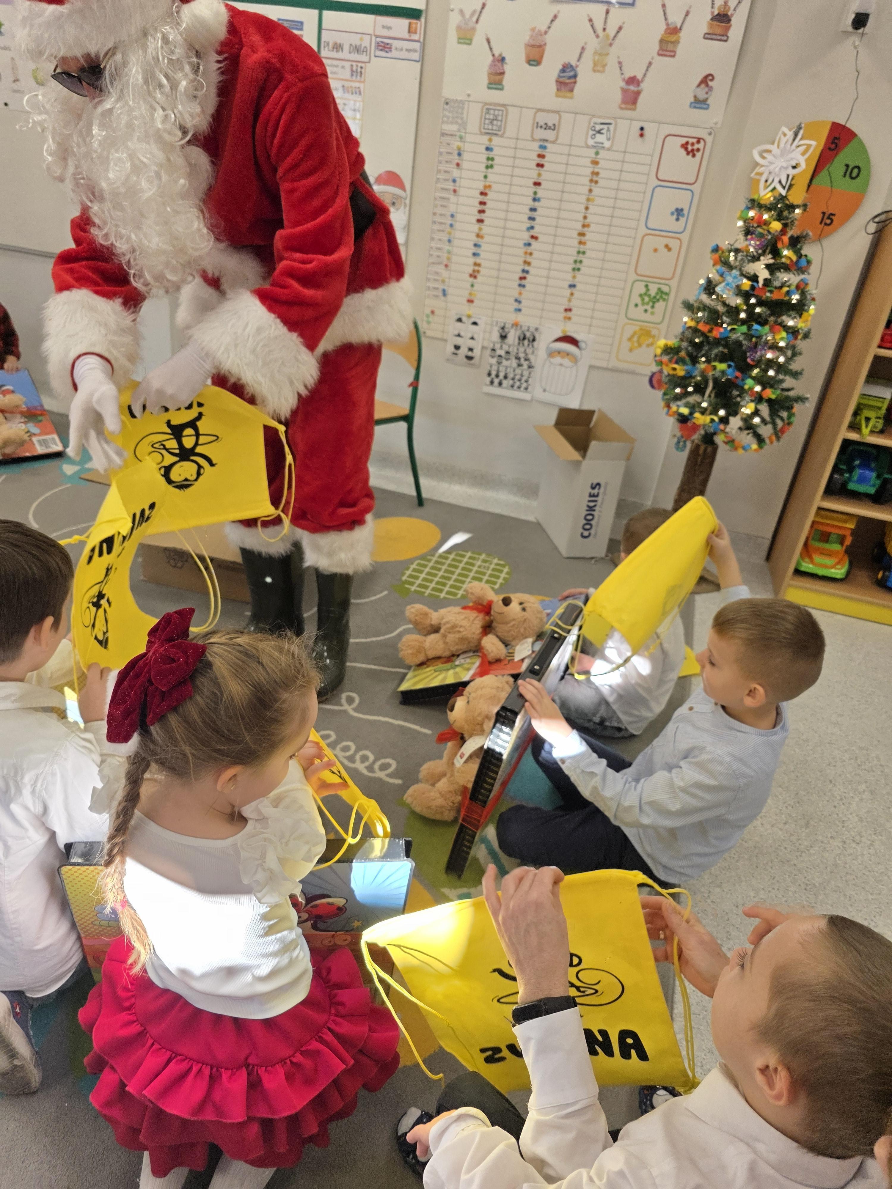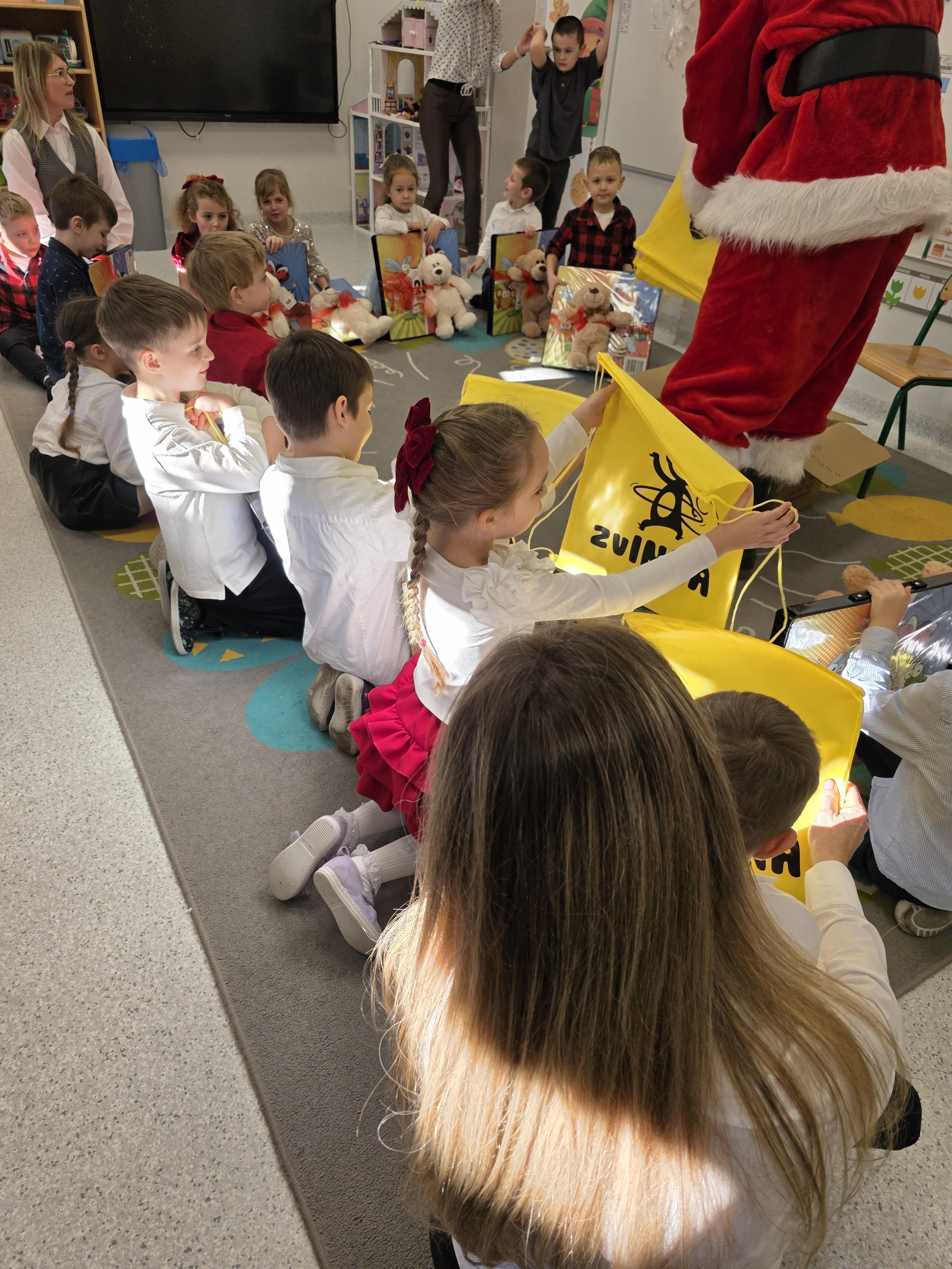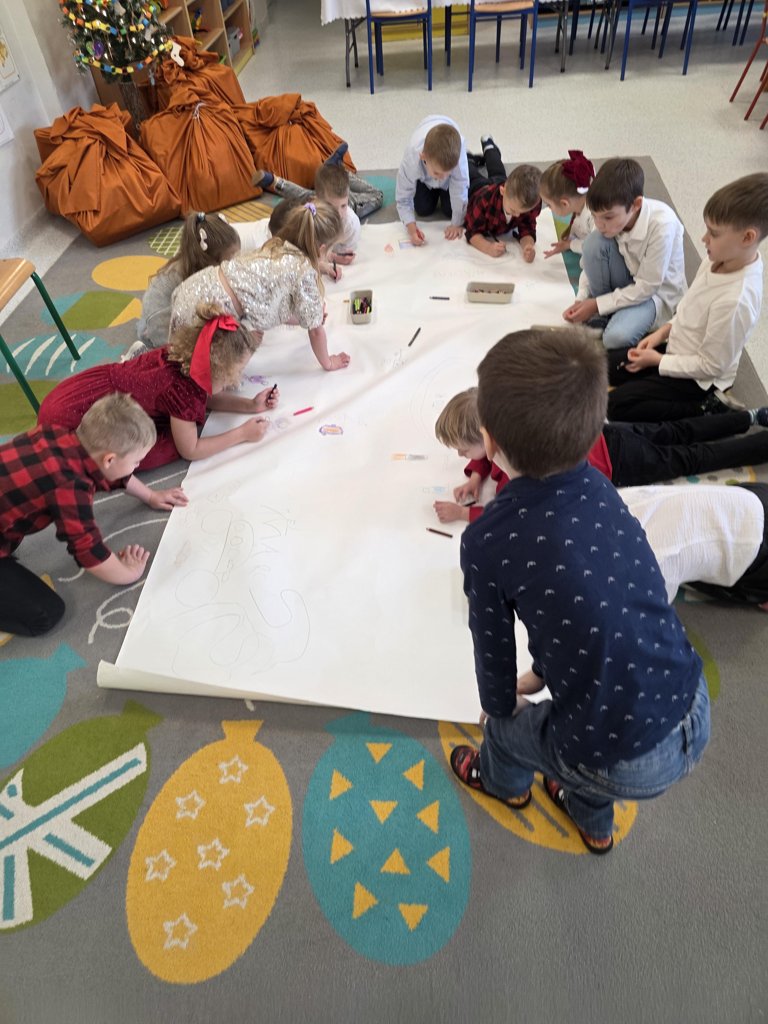 W piątek, 19 grudnia, w naszym przedszkolu odbyła się uroczysta Wigilia. Dzieci w odświętnych strojach śpiewały kolędy, brały udział w zabawach związanych ze świętami oraz zimą, a także z radością powitały Gwiazdora, od którego otrzymały prezenty. Wspólnie z zaproszonymi gośćmi – Paniami Dyrektor – zasiedliśmy do uroczystego drugiego śniadania. Podczas obiadu nie zabrakło tradycyjnych potraw. Spotkanie upłynęło w ciepłej, świątecznej atmosferze.