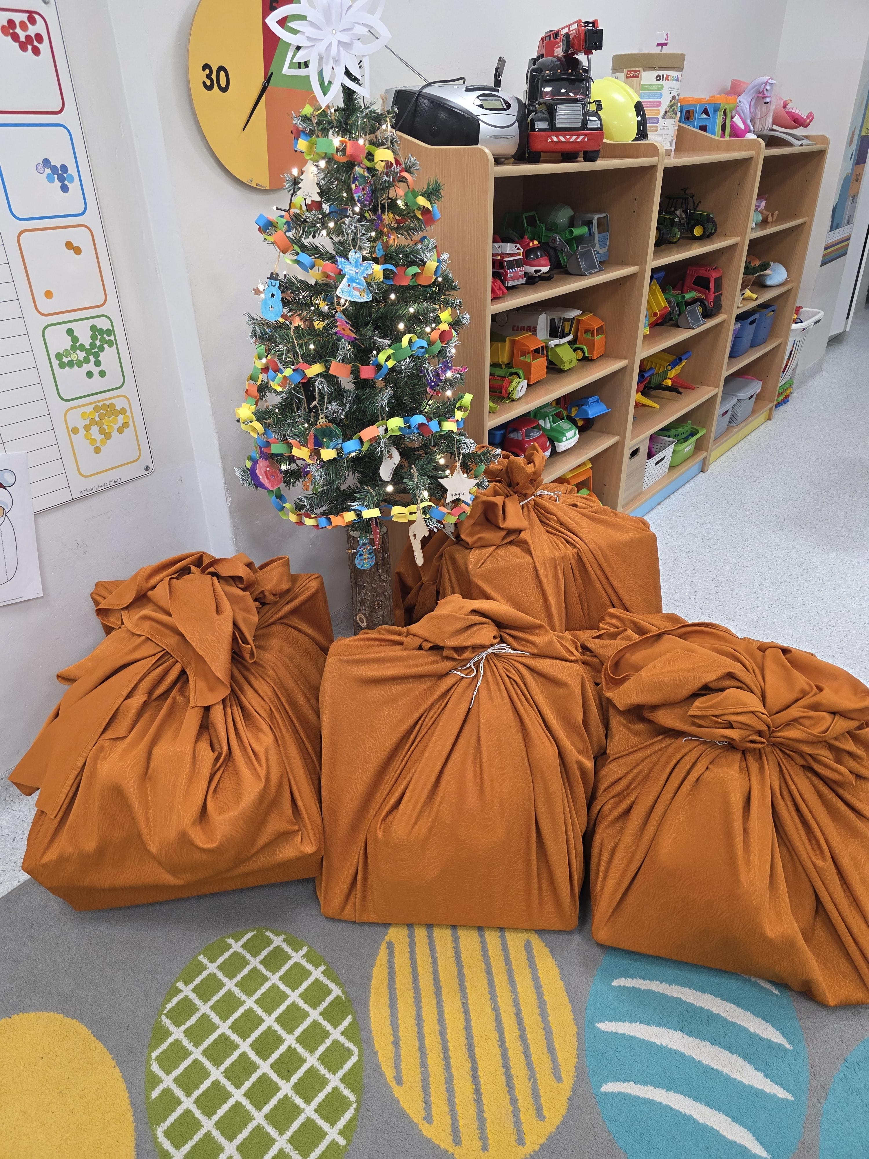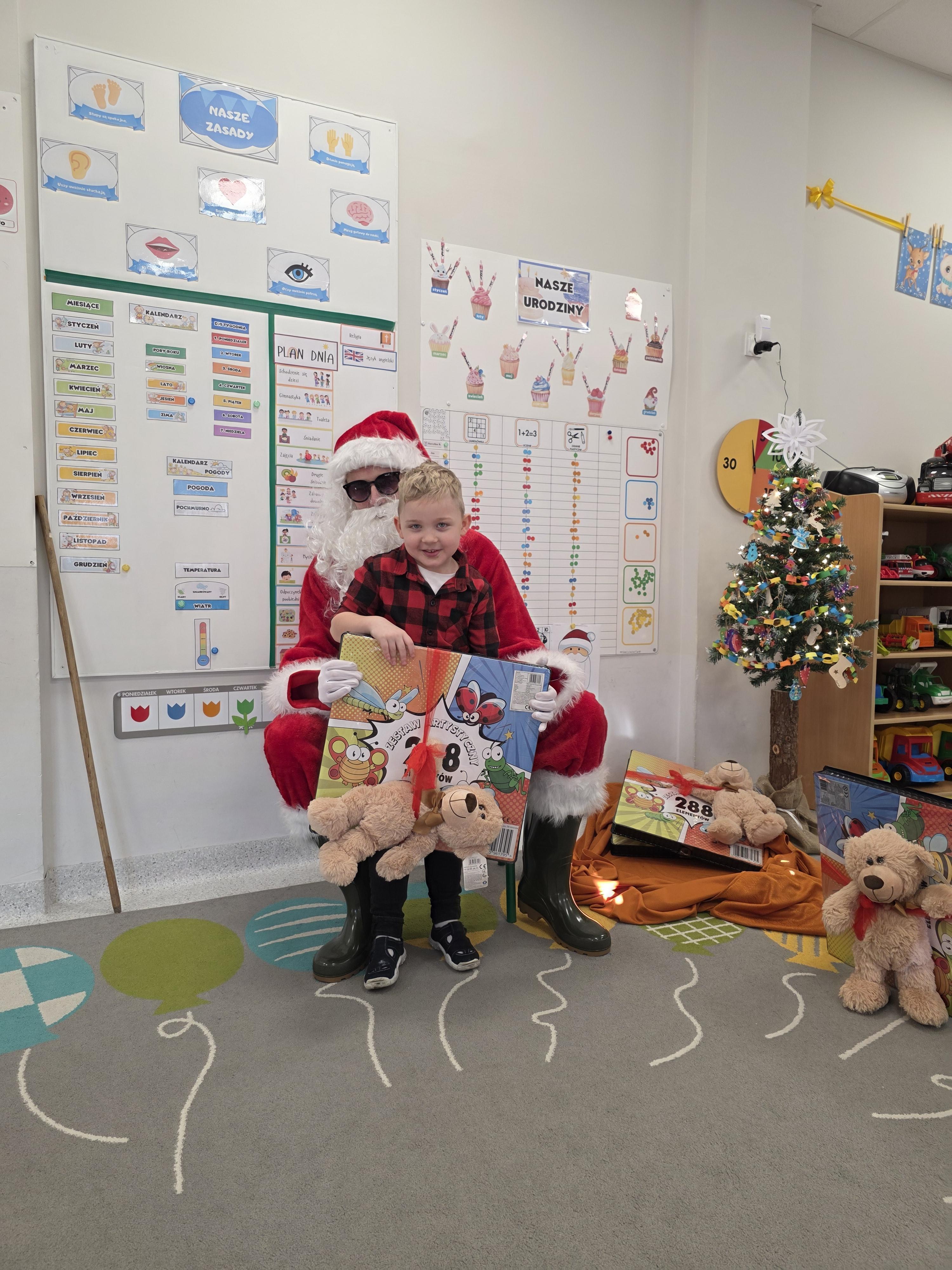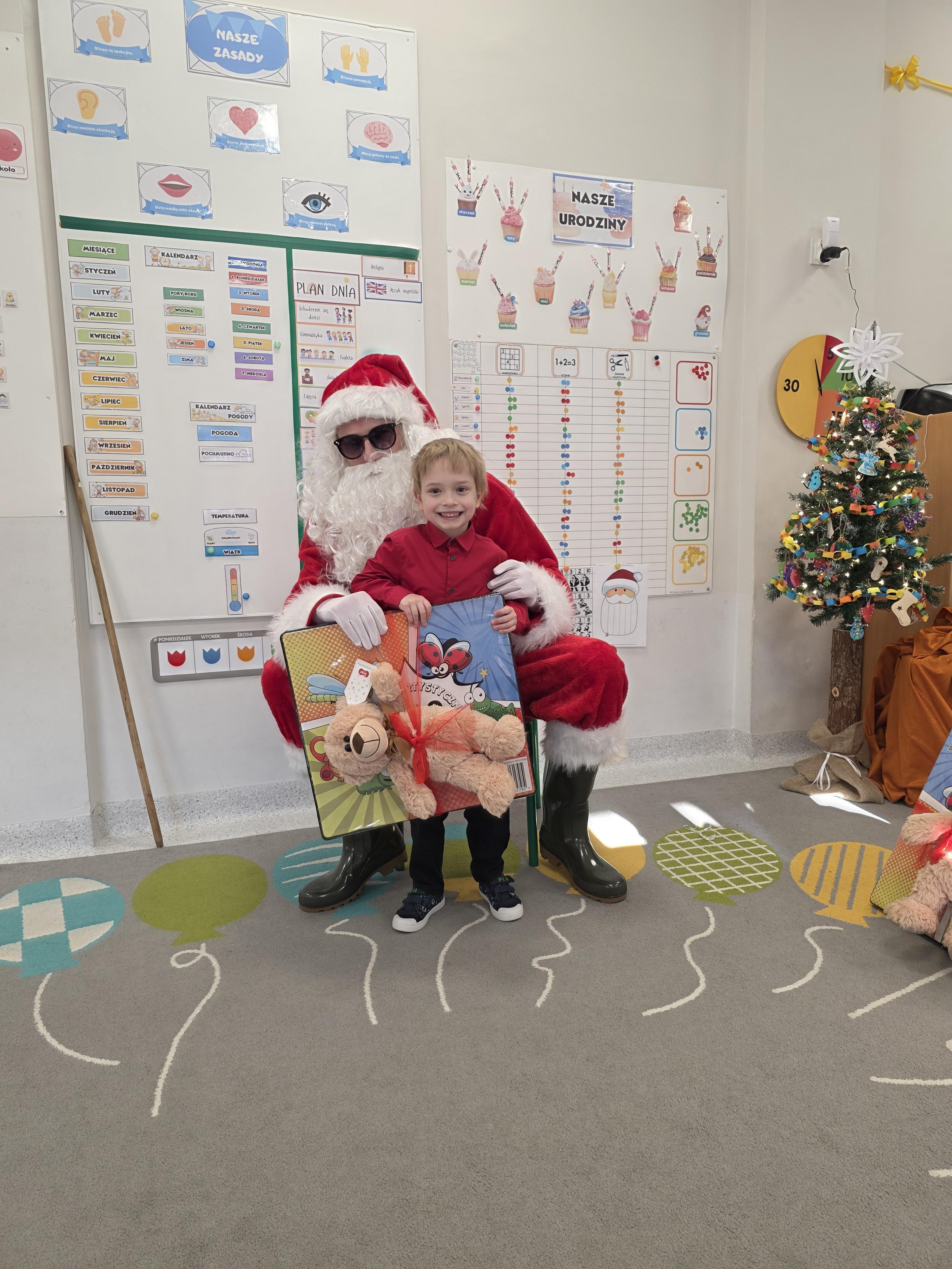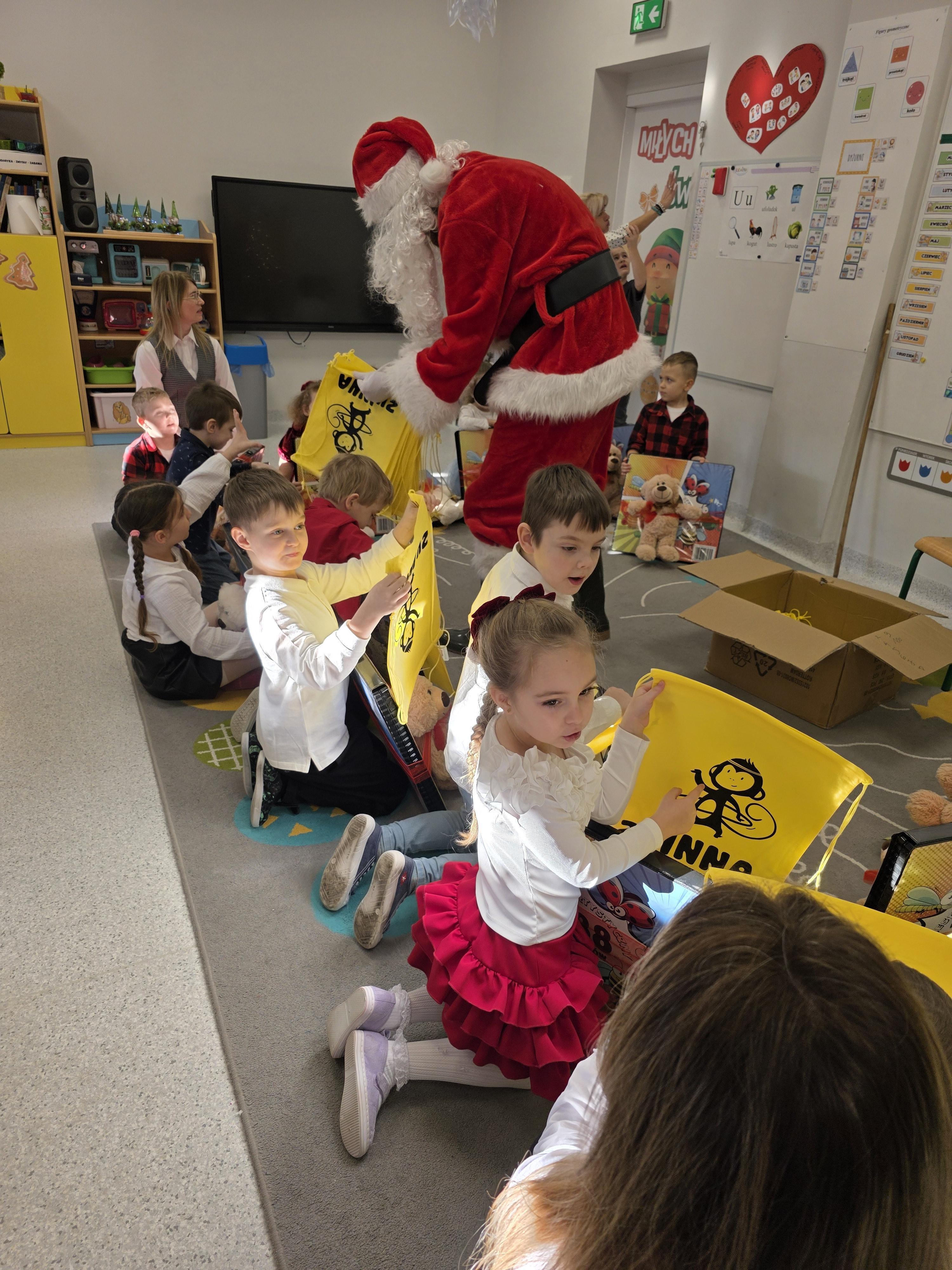 W piątek, 19 grudnia, w naszym przedszkolu odbyła się uroczysta Wigilia. Dzieci w odświętnych strojach śpiewały kolędy, brały udział w zabawach związanych ze świętami oraz zimą, a także z radością powitały Gwiazdora, od którego otrzymały prezenty. Wspólnie z zaproszonymi gośćmi – Paniami Dyrektor – zasiedliśmy do uroczystego drugiego śniadania. Podczas obiadu nie zabrakło tradycyjnych potraw. Spotkanie upłynęło w ciepłej, świątecznej atmosferze.