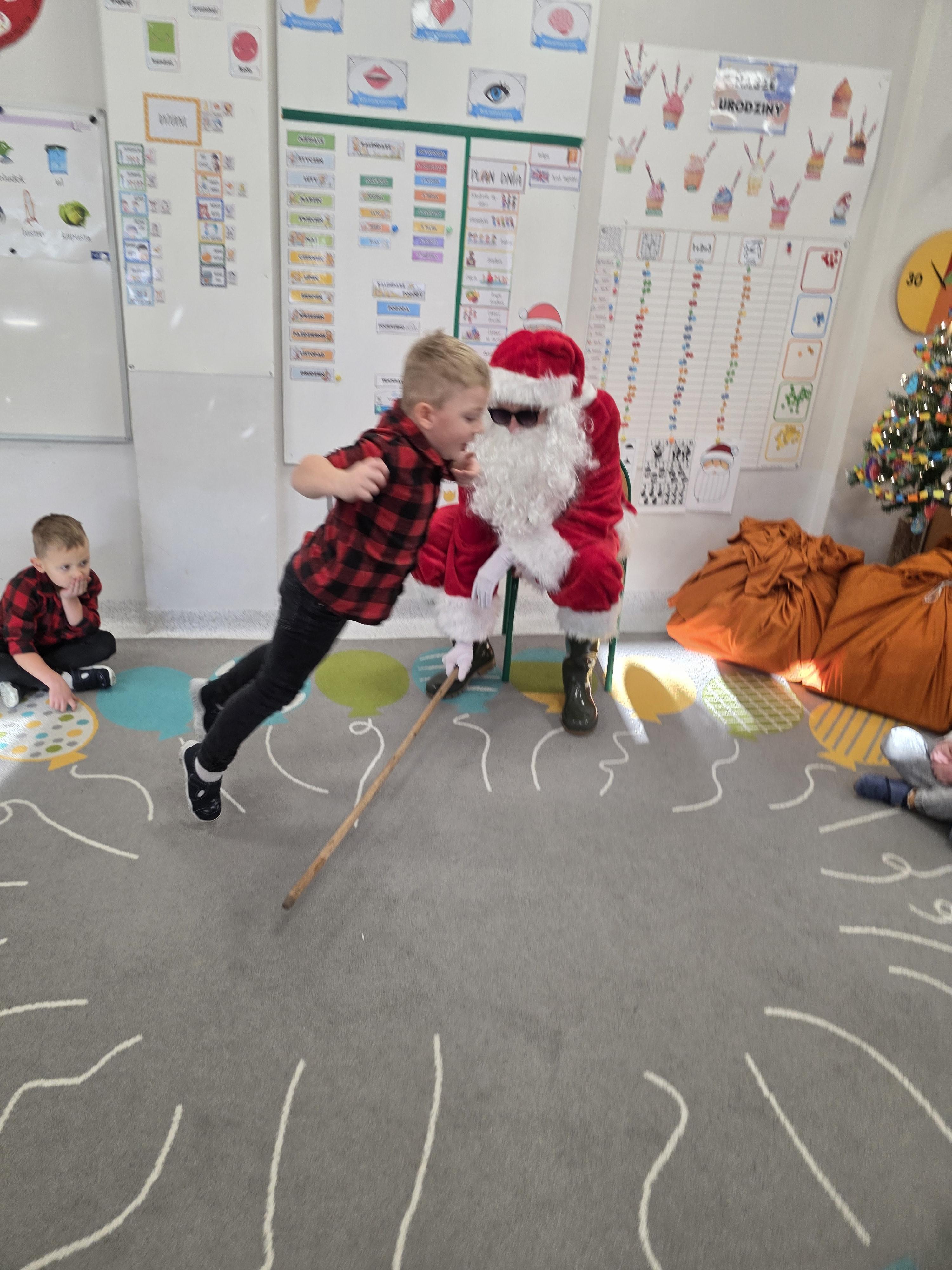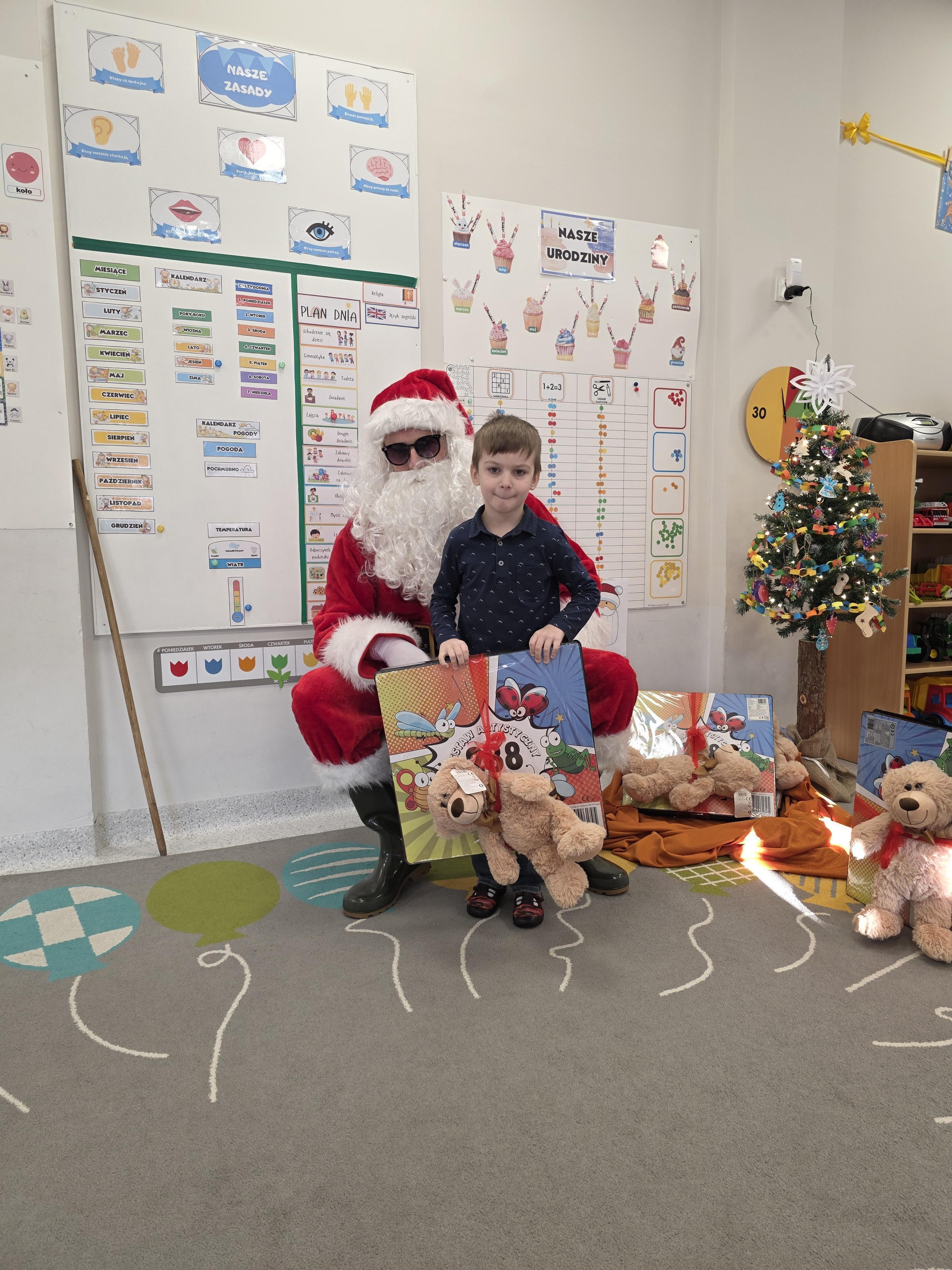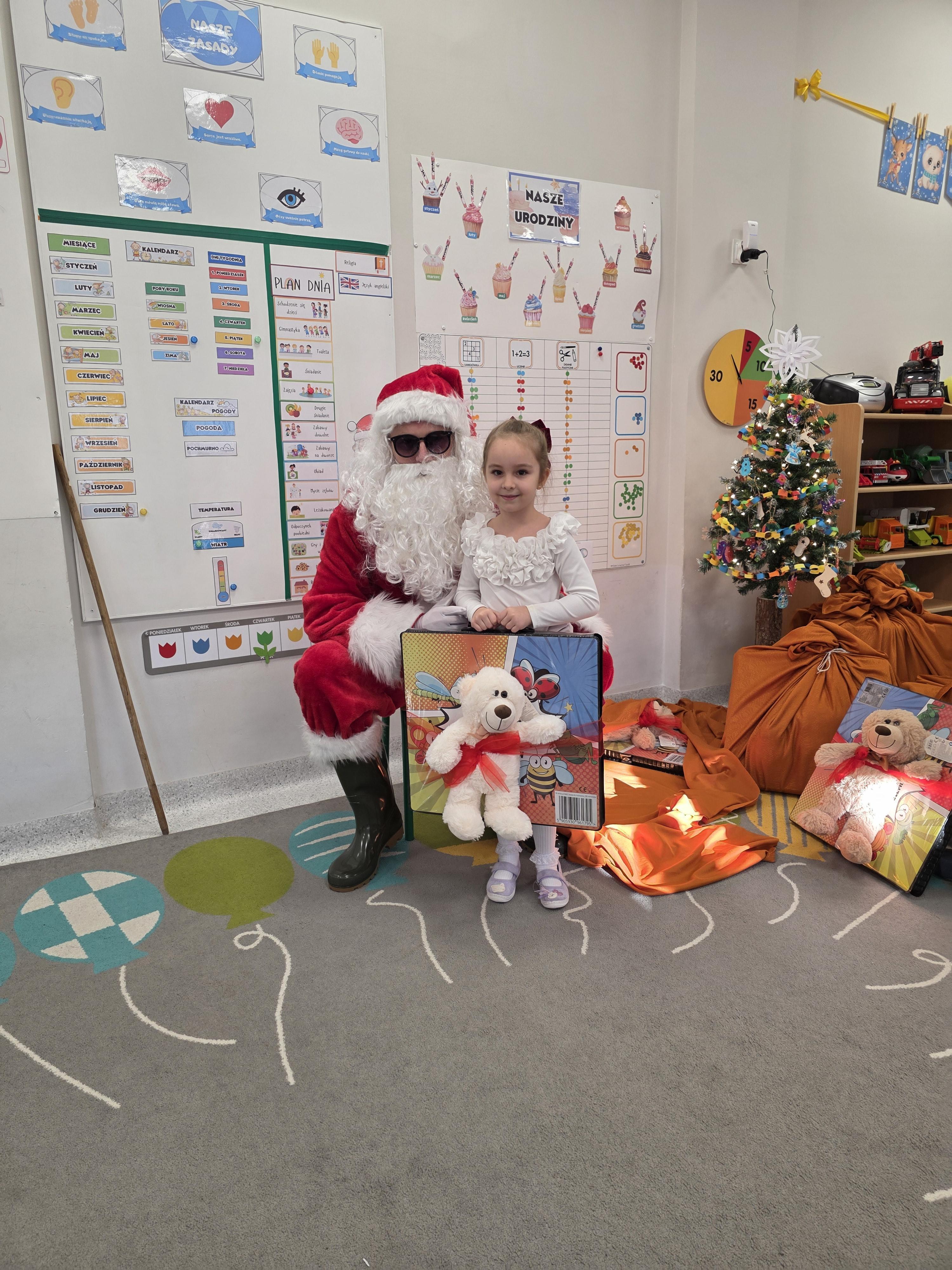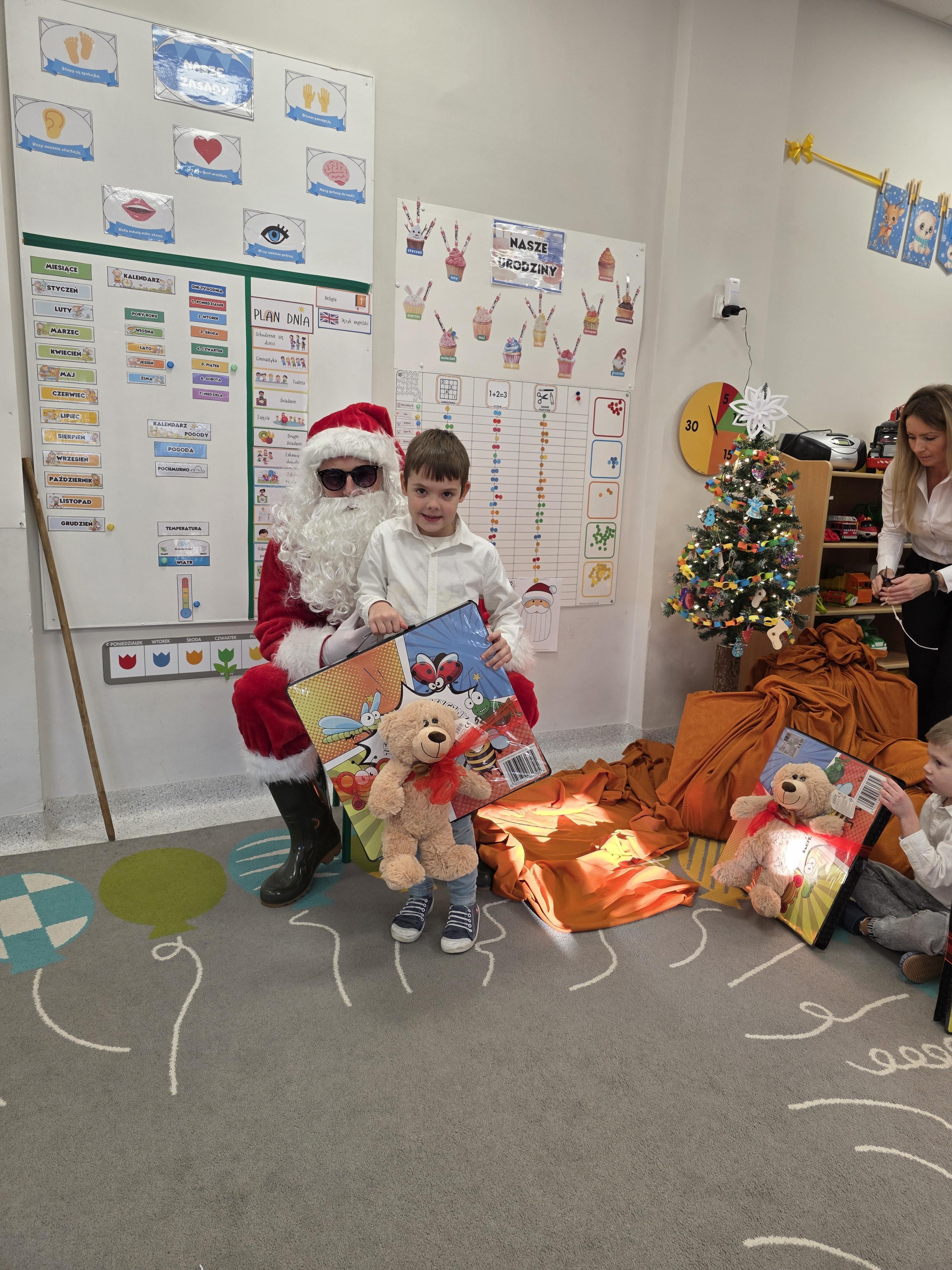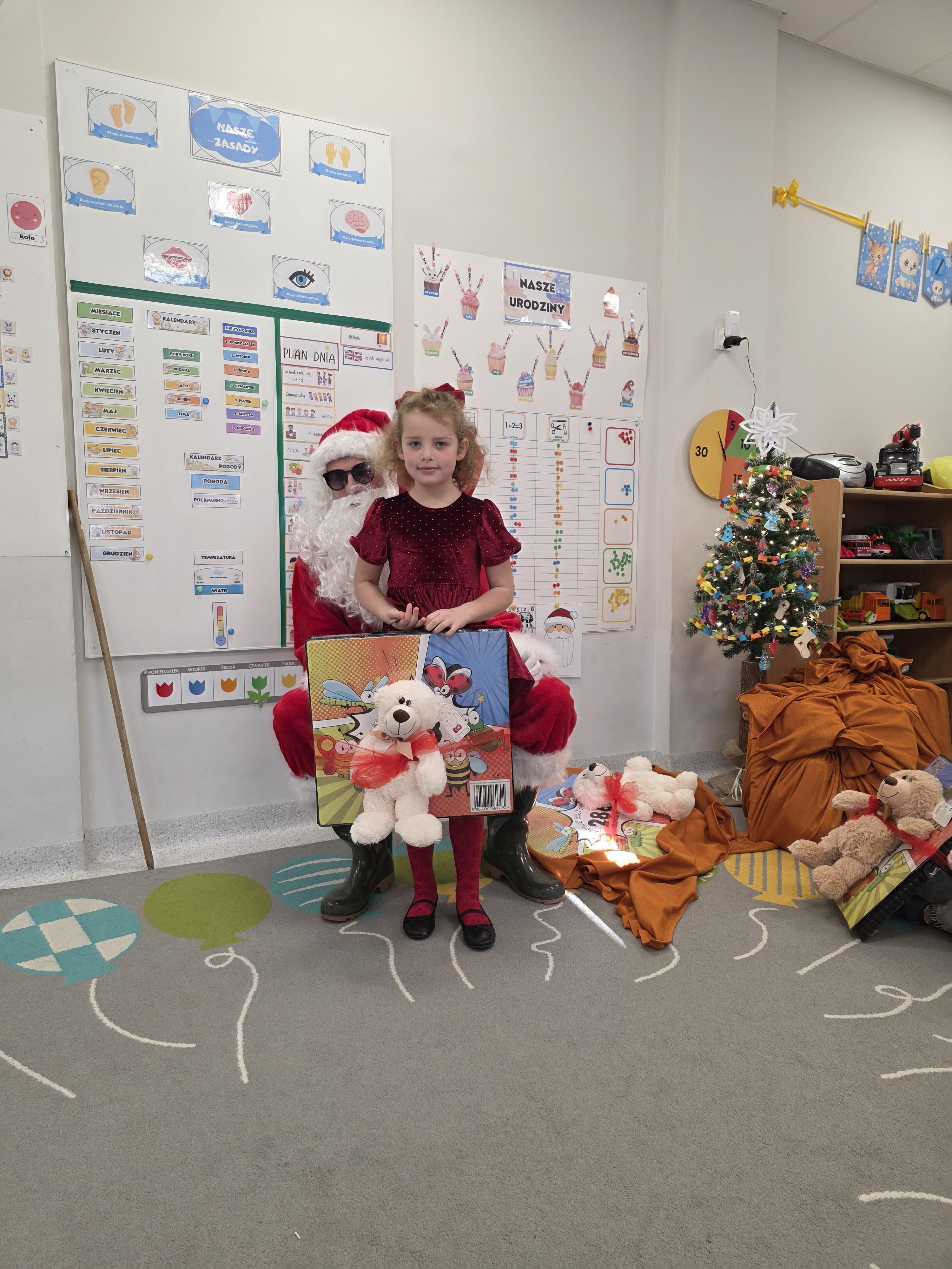 W piątek, 19 grudnia, w naszym przedszkolu odbyła się uroczysta Wigilia. Dzieci w odświętnych strojach śpiewały kolędy, brały udział w zabawach związanych ze świętami oraz zimą, a także z radością powitały Gwiazdora, od którego otrzymały prezenty. Wspólnie z zaproszonymi gośćmi – Paniami Dyrektor – zasiedliśmy do uroczystego drugiego śniadania. Podczas obiadu nie zabrakło tradycyjnych potraw. Spotkanie upłynęło w ciepłej, świątecznej atmosferze.