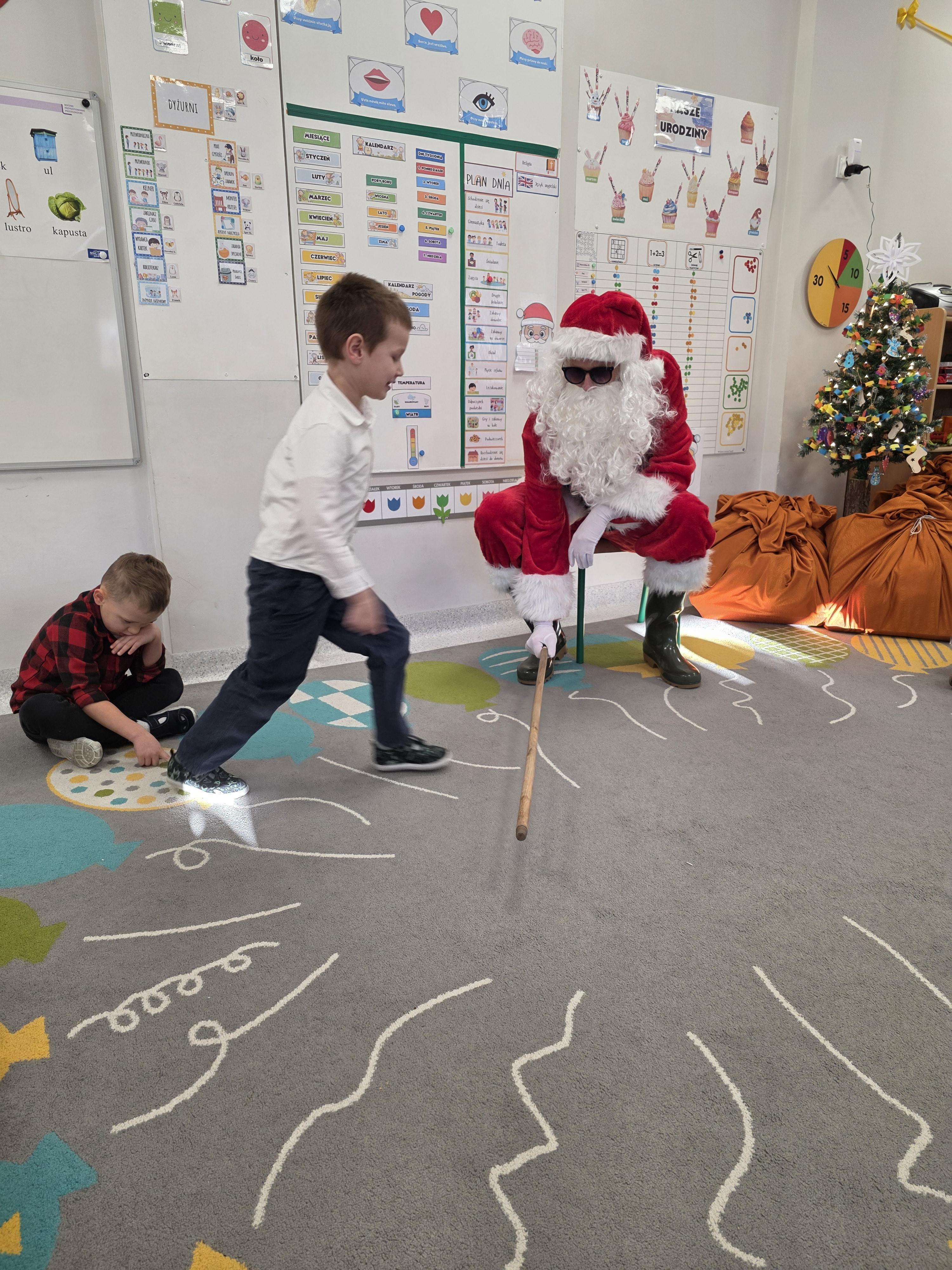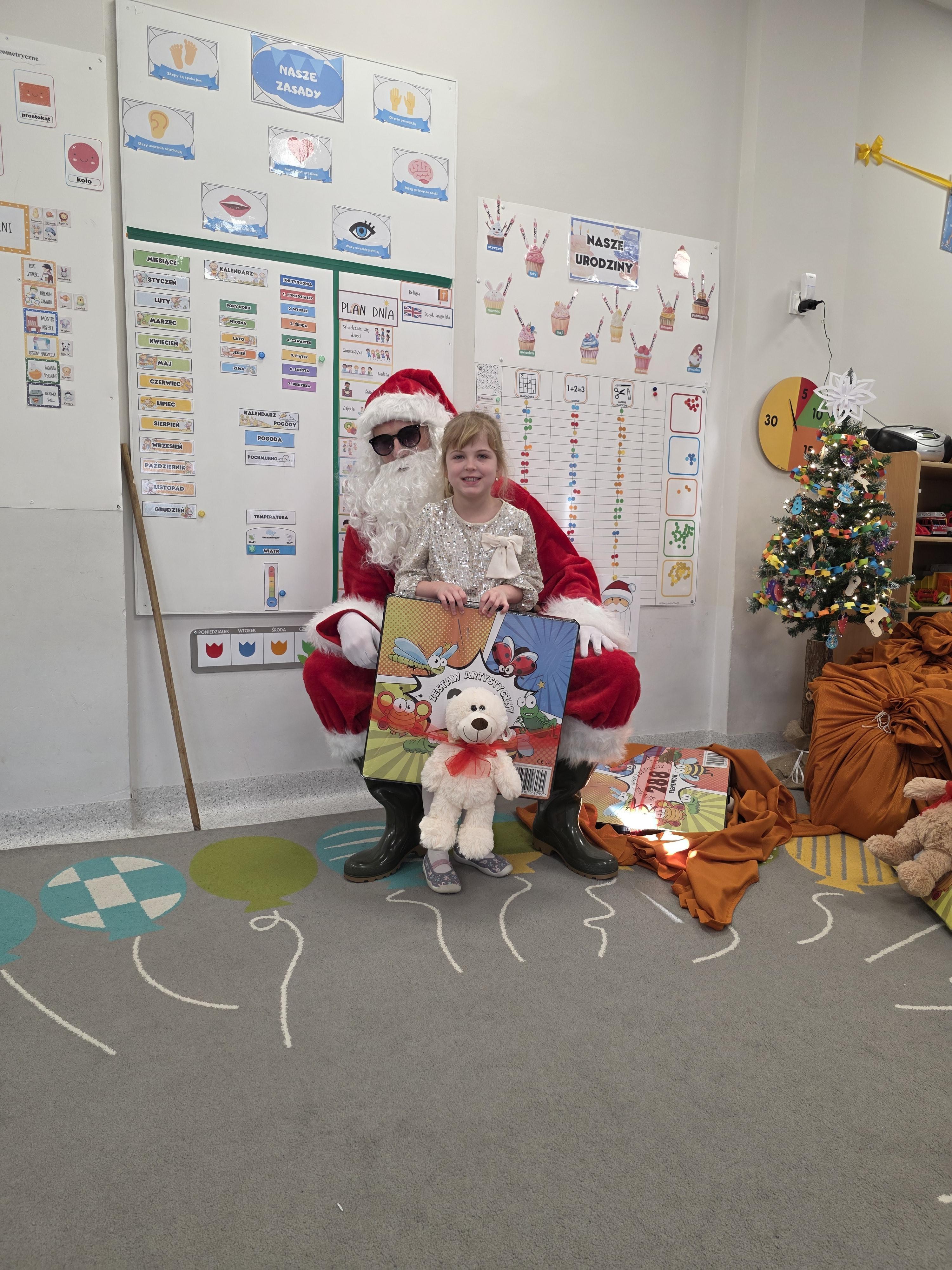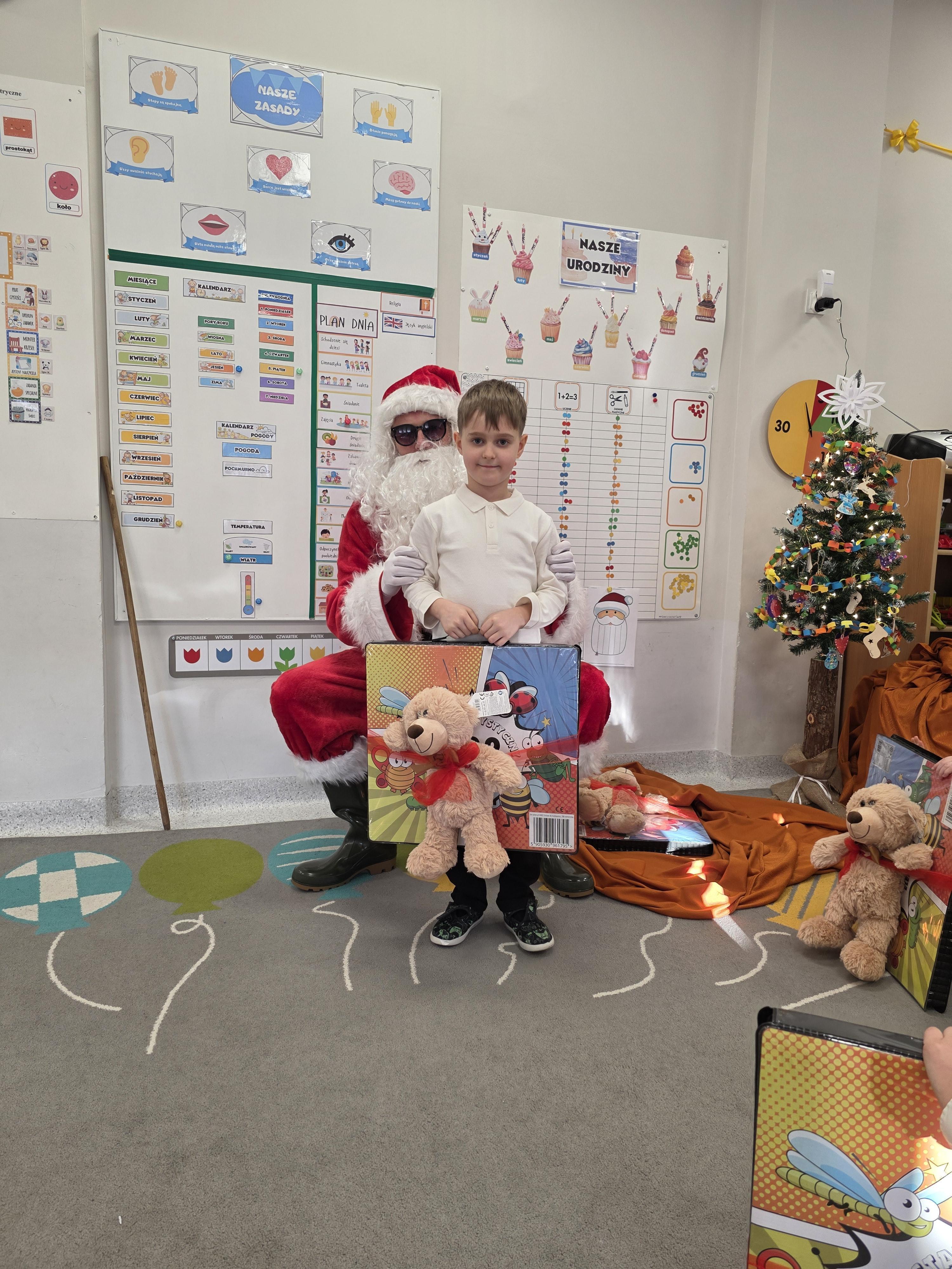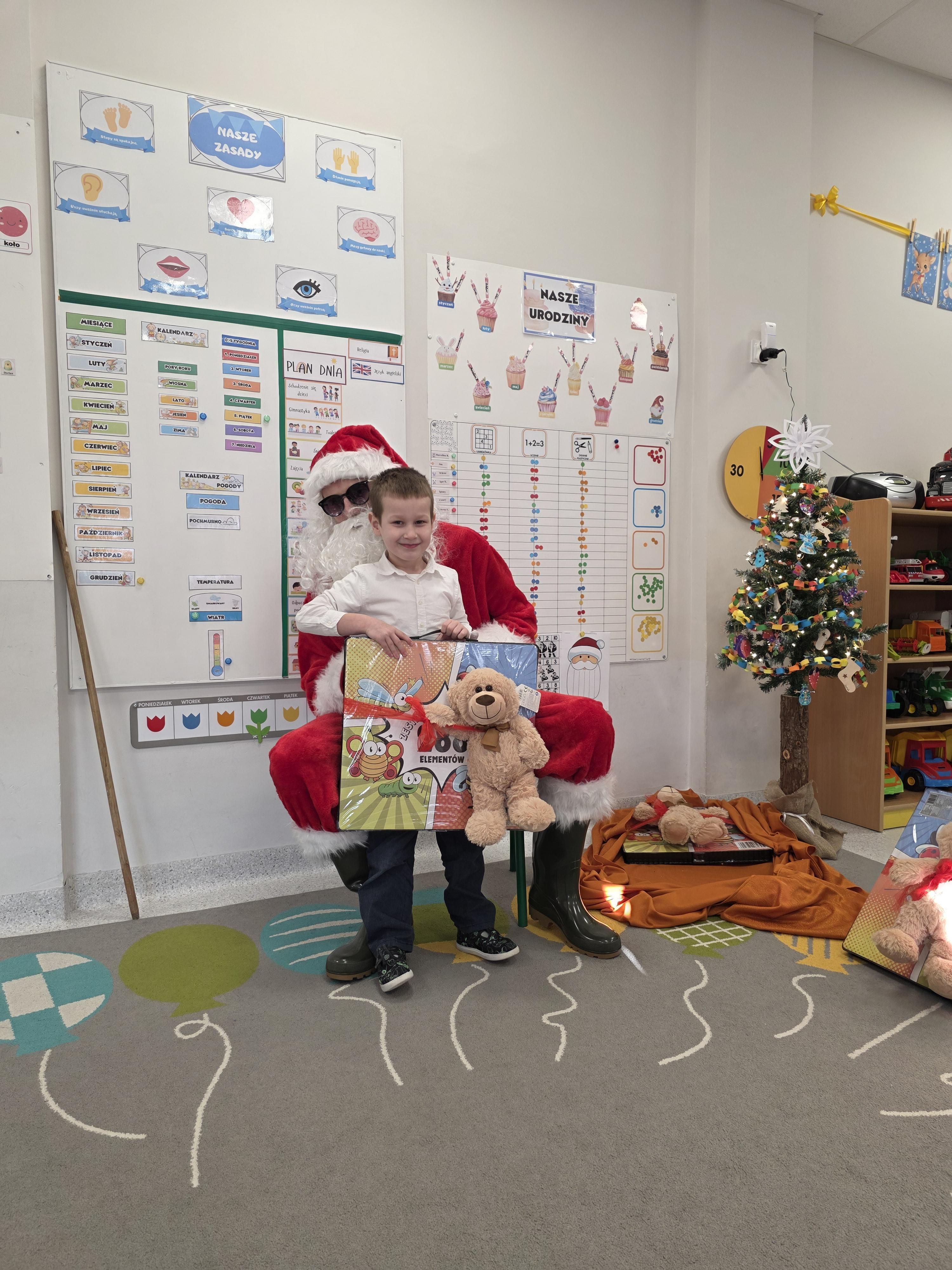 W piątek, 19 grudnia, w naszym przedszkolu odbyła się uroczysta Wigilia. Dzieci w odświętnych strojach śpiewały kolędy, brały udział w zabawach związanych ze świętami oraz zimą, a także z radością powitały Gwiazdora, od którego otrzymały prezenty. Wspólnie z zaproszonymi gośćmi – Paniami Dyrektor – zasiedliśmy do uroczystego drugiego śniadania. Podczas obiadu nie zabrakło tradycyjnych potraw. Spotkanie upłynęło w ciepłej, świątecznej atmosferze.