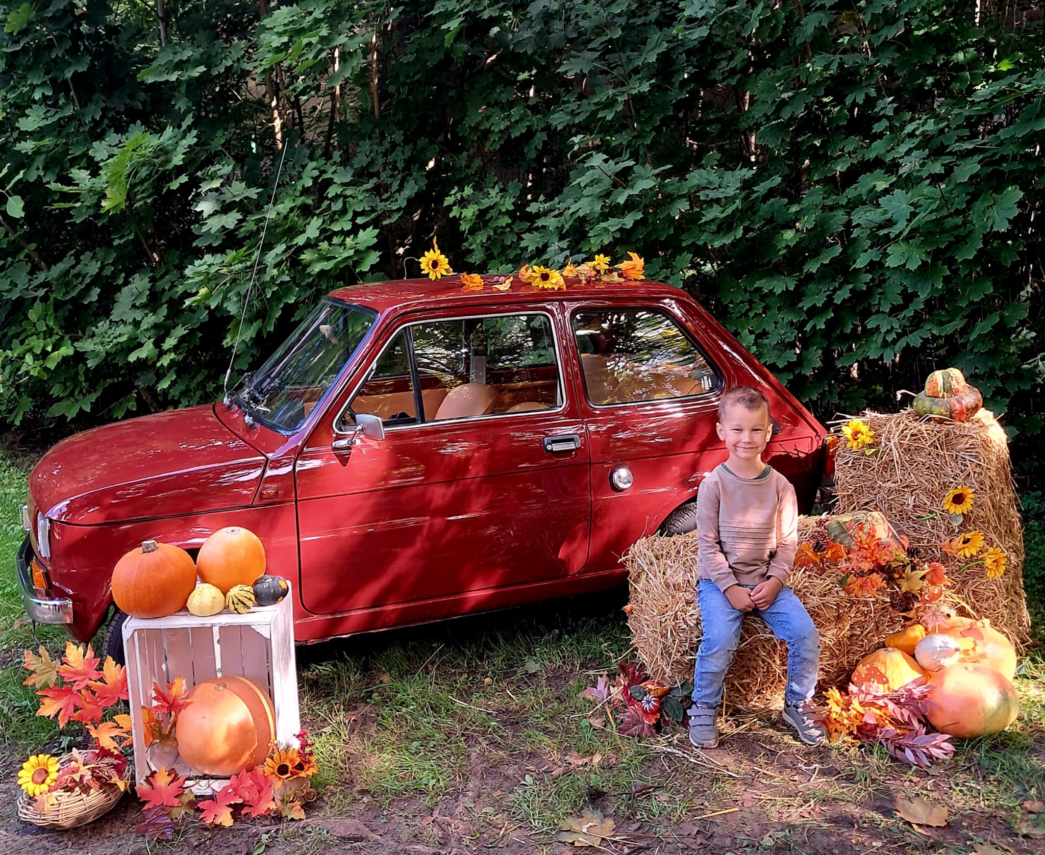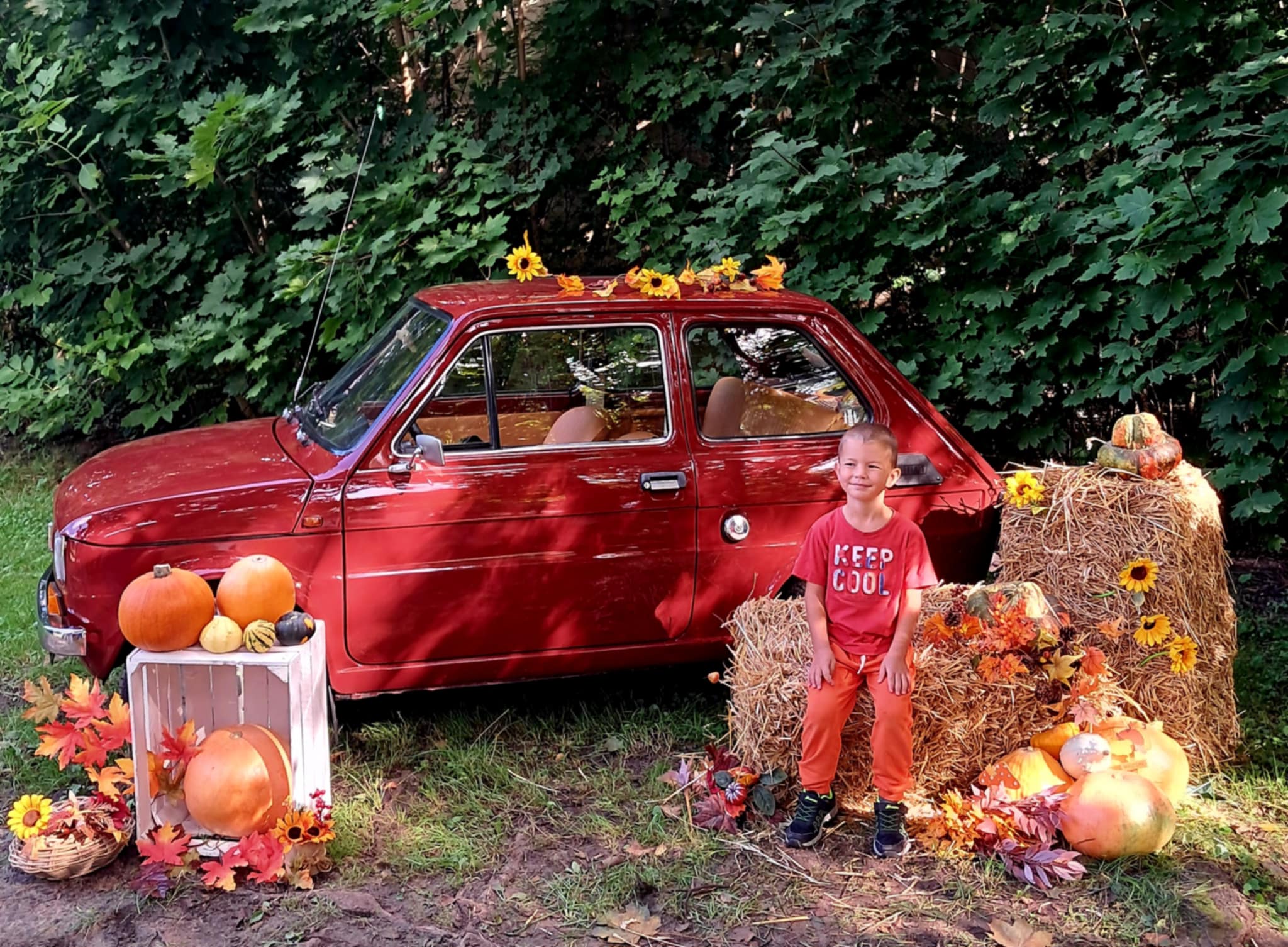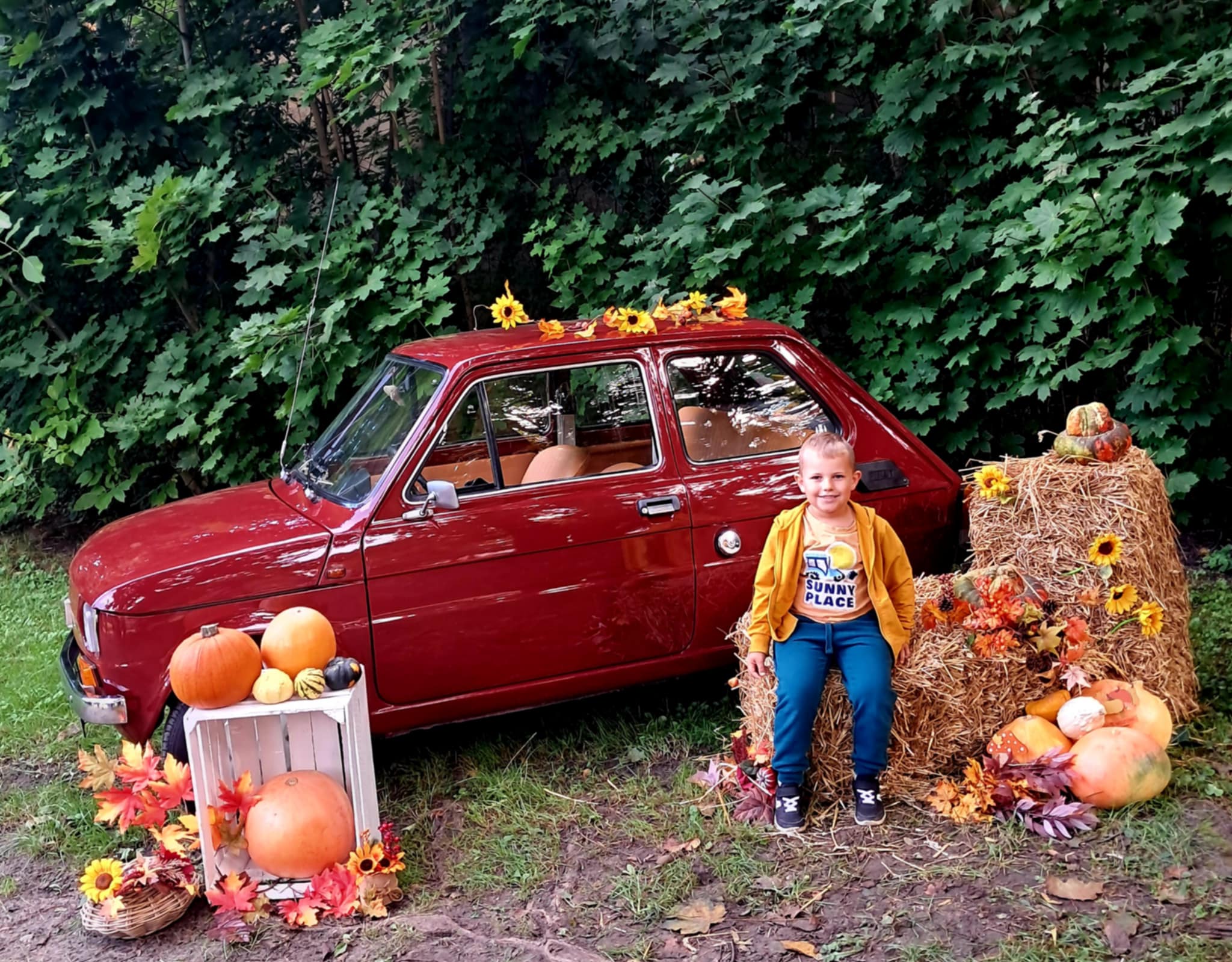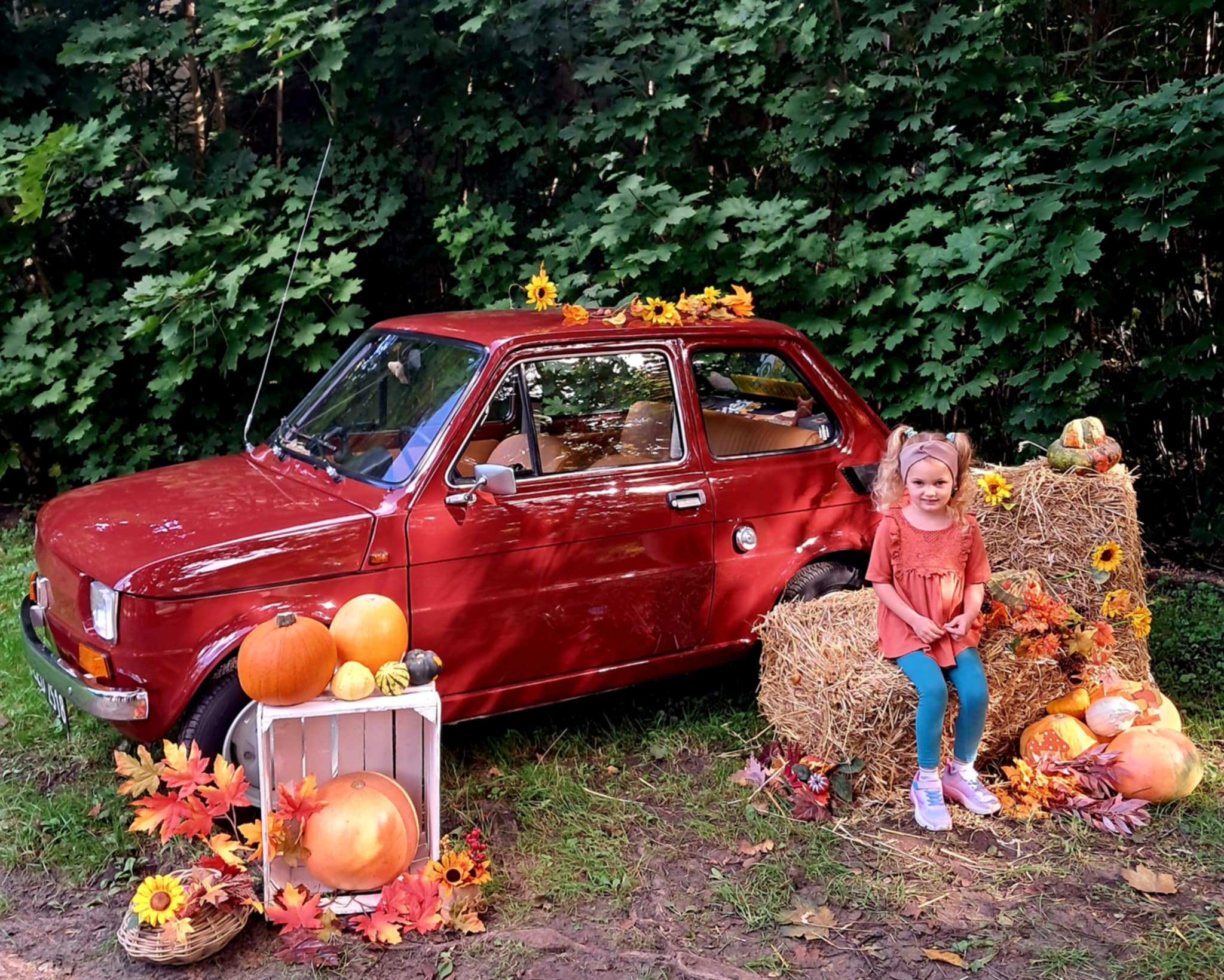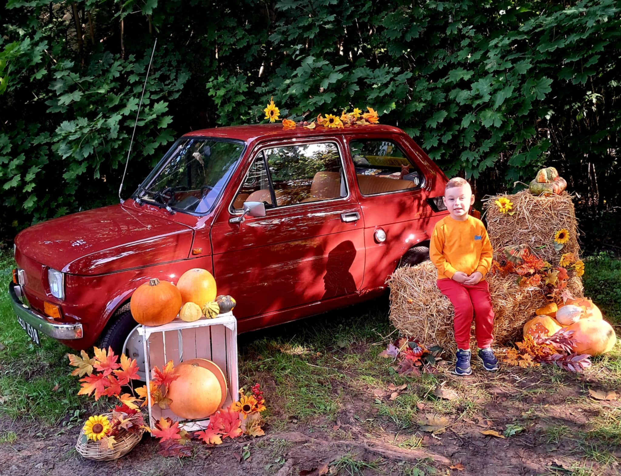 Dziś powitaliśmy jesień! Dzieci wybrały się na spacer do parku. Nie zabrakło także pamiątkowych zdjęć – tym razem w wyjątkowym towarzystwie jesiennego rekwizytu – kultowego auta „Malucha”!