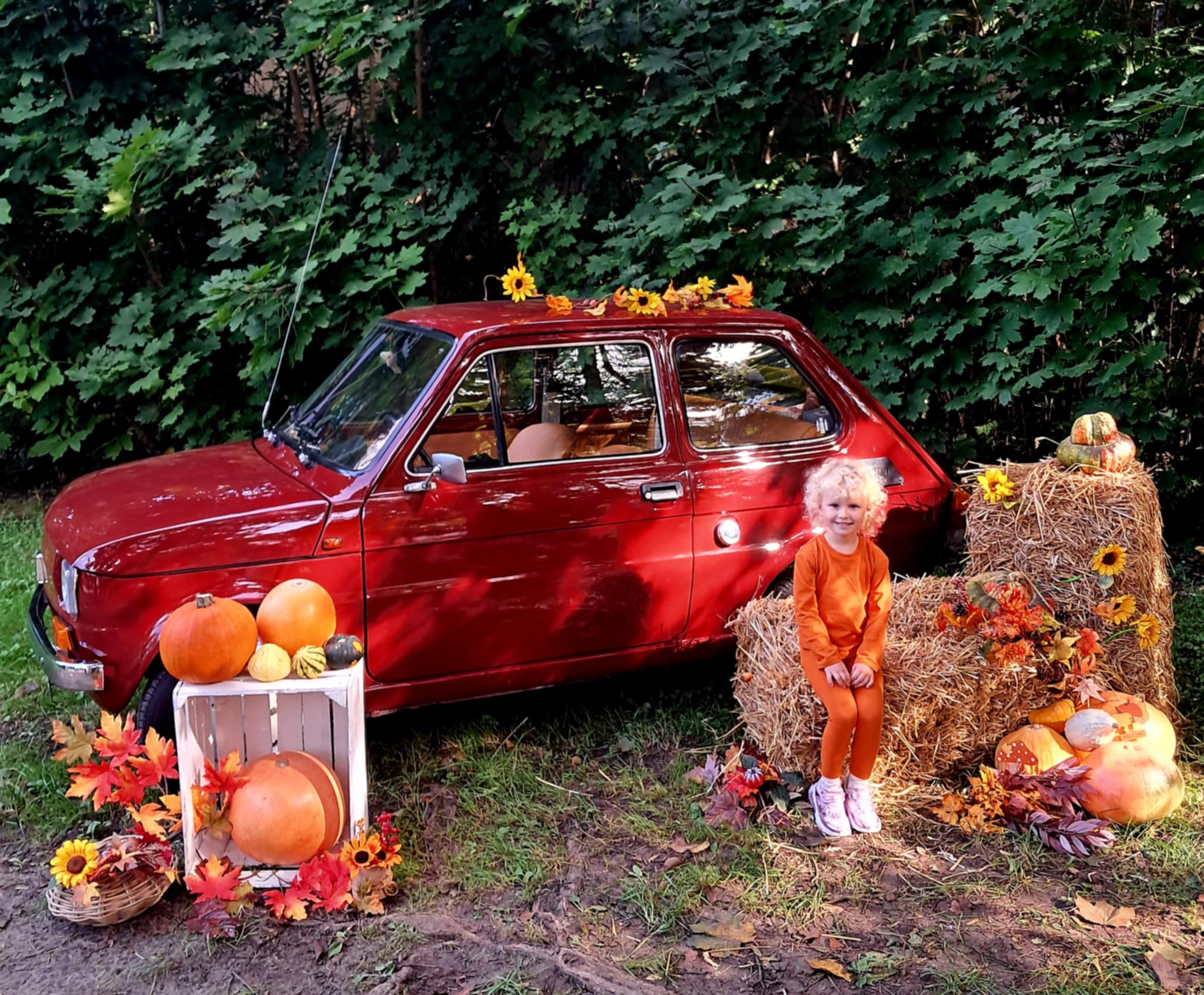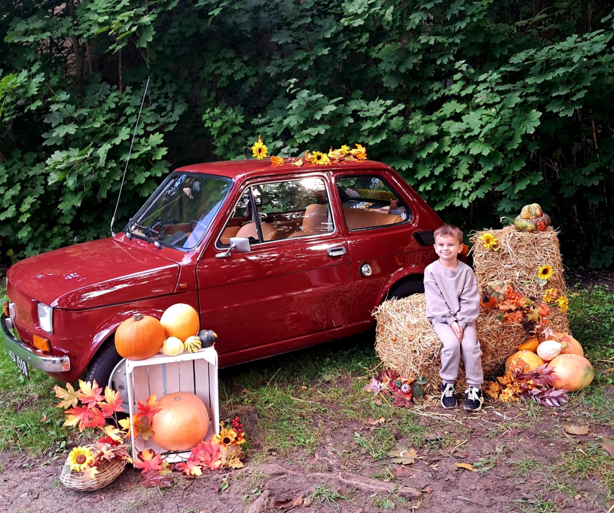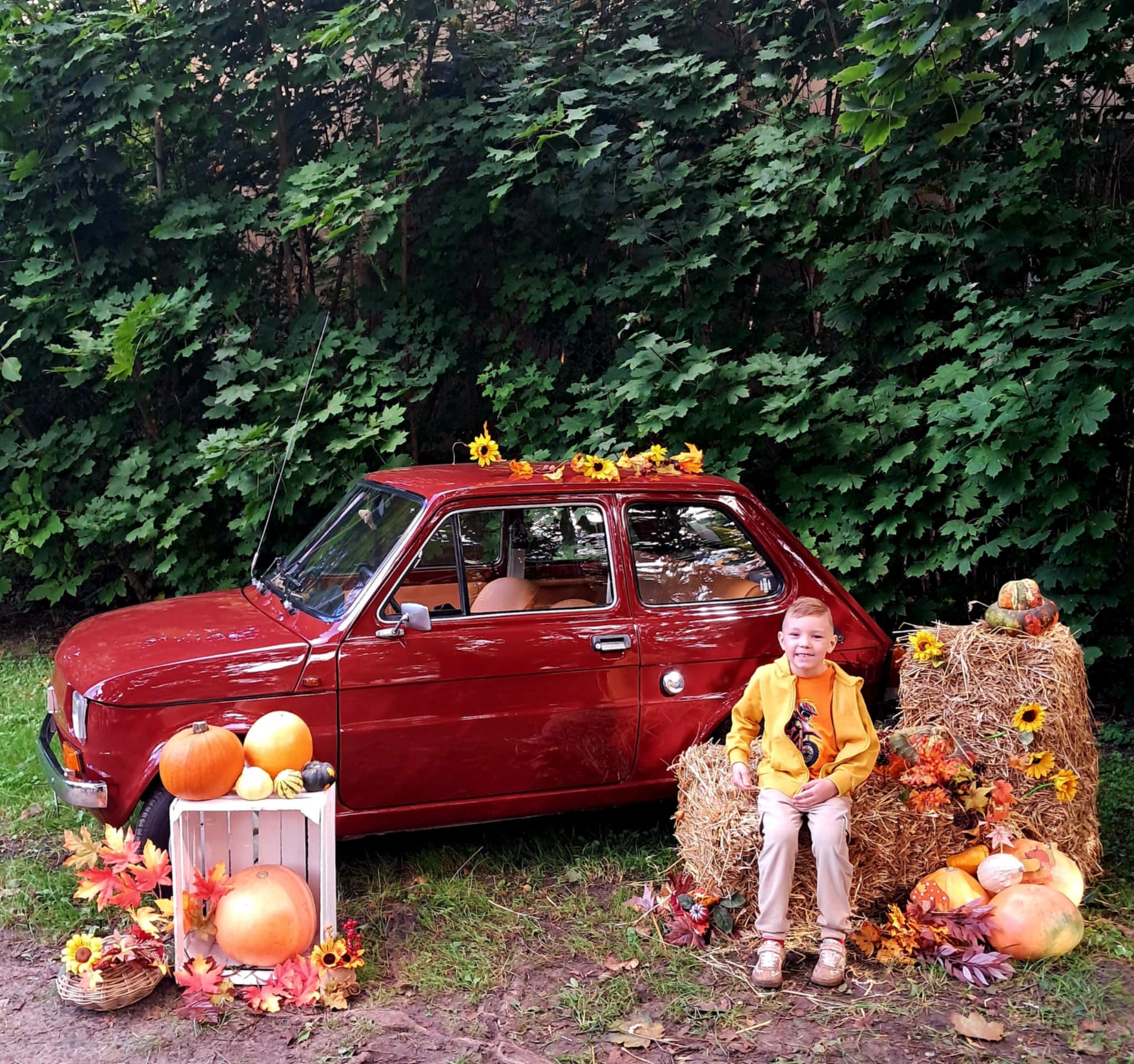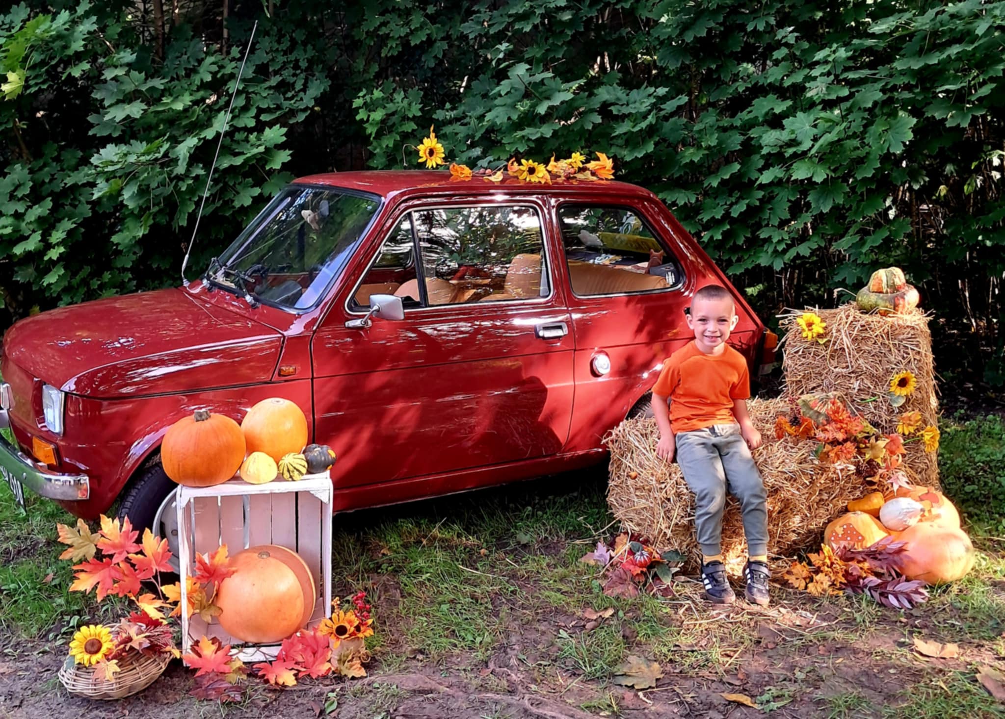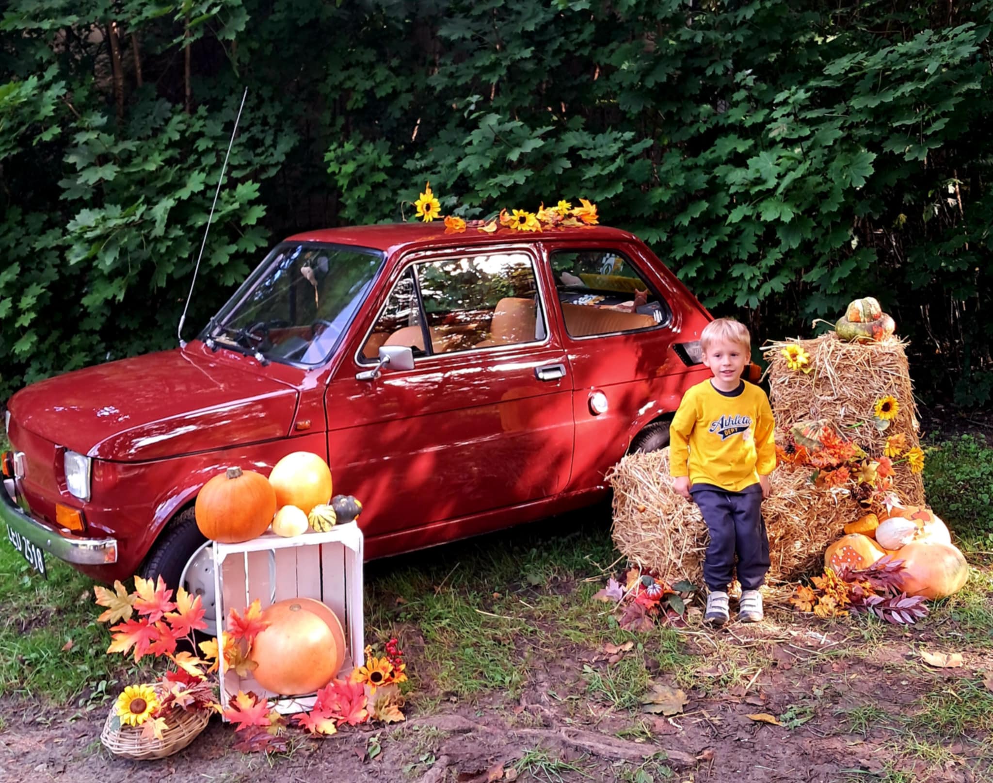 Dziś powitaliśmy jesień! Dzieci wybrały się na spacer do parku. Nie zabrakło także pamiątkowych zdjęć – tym razem w wyjątkowym towarzystwie jesiennego rekwizytu – kultowego auta „Malucha”!