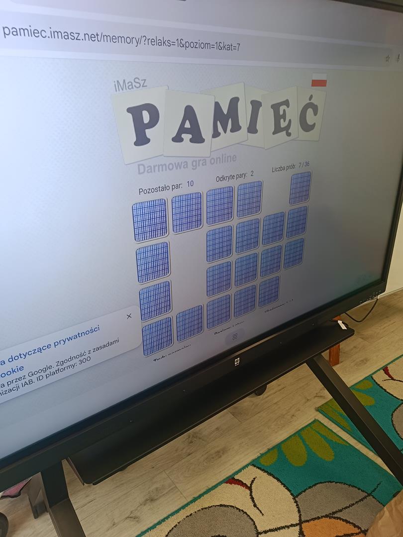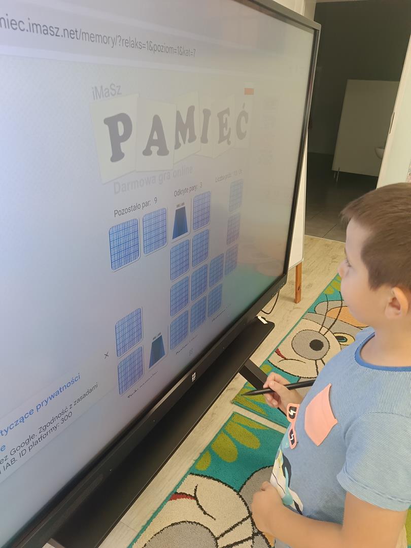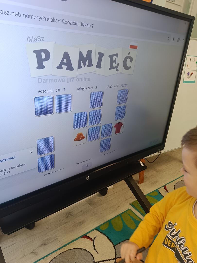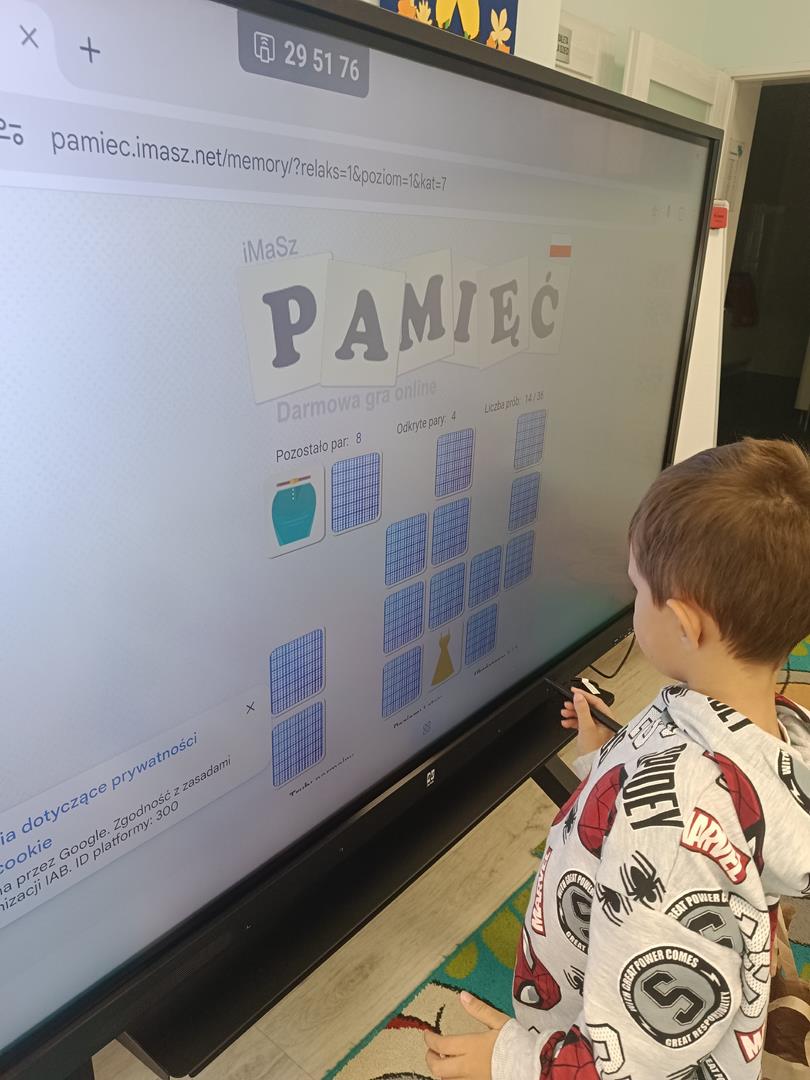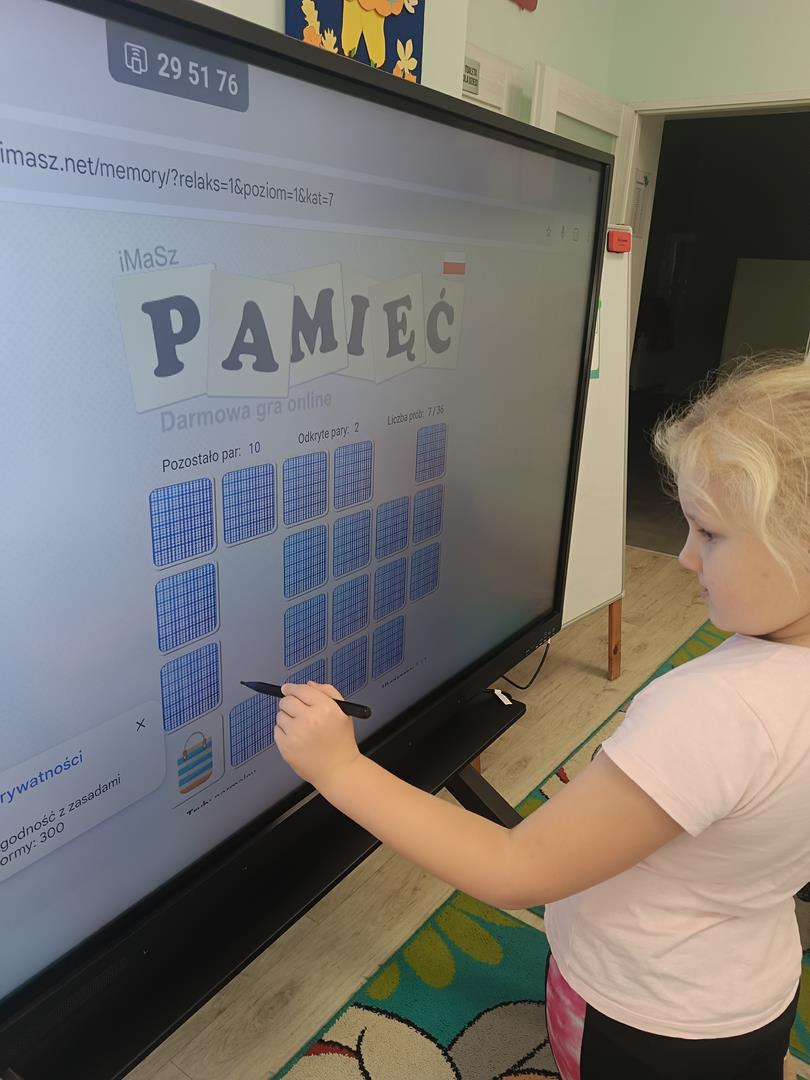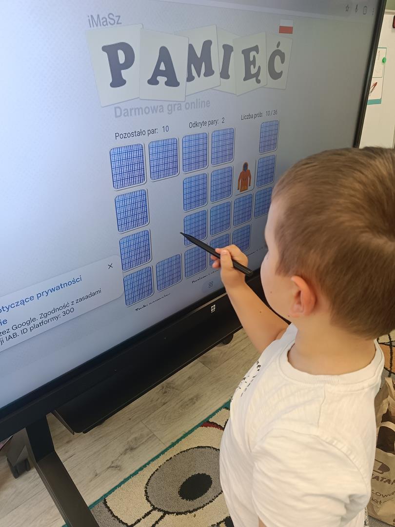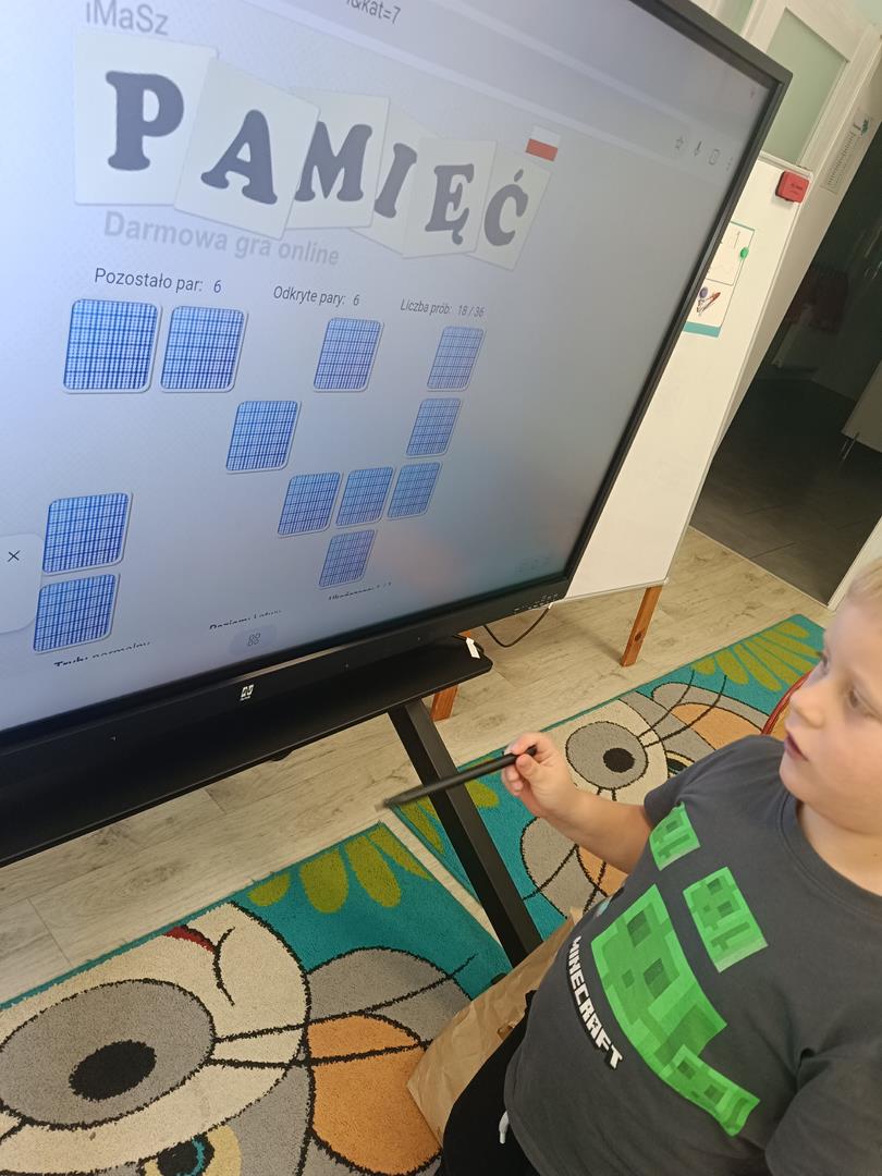 Dzieci z naszej grupy miały dziś okazję zagrać w grę memory na tablicy interaktywnej. Zabawa polegała na odnajdywaniu par obrazków, ale najważniejsze było coś więcej niż tylko dobra pamięć – współpraca.