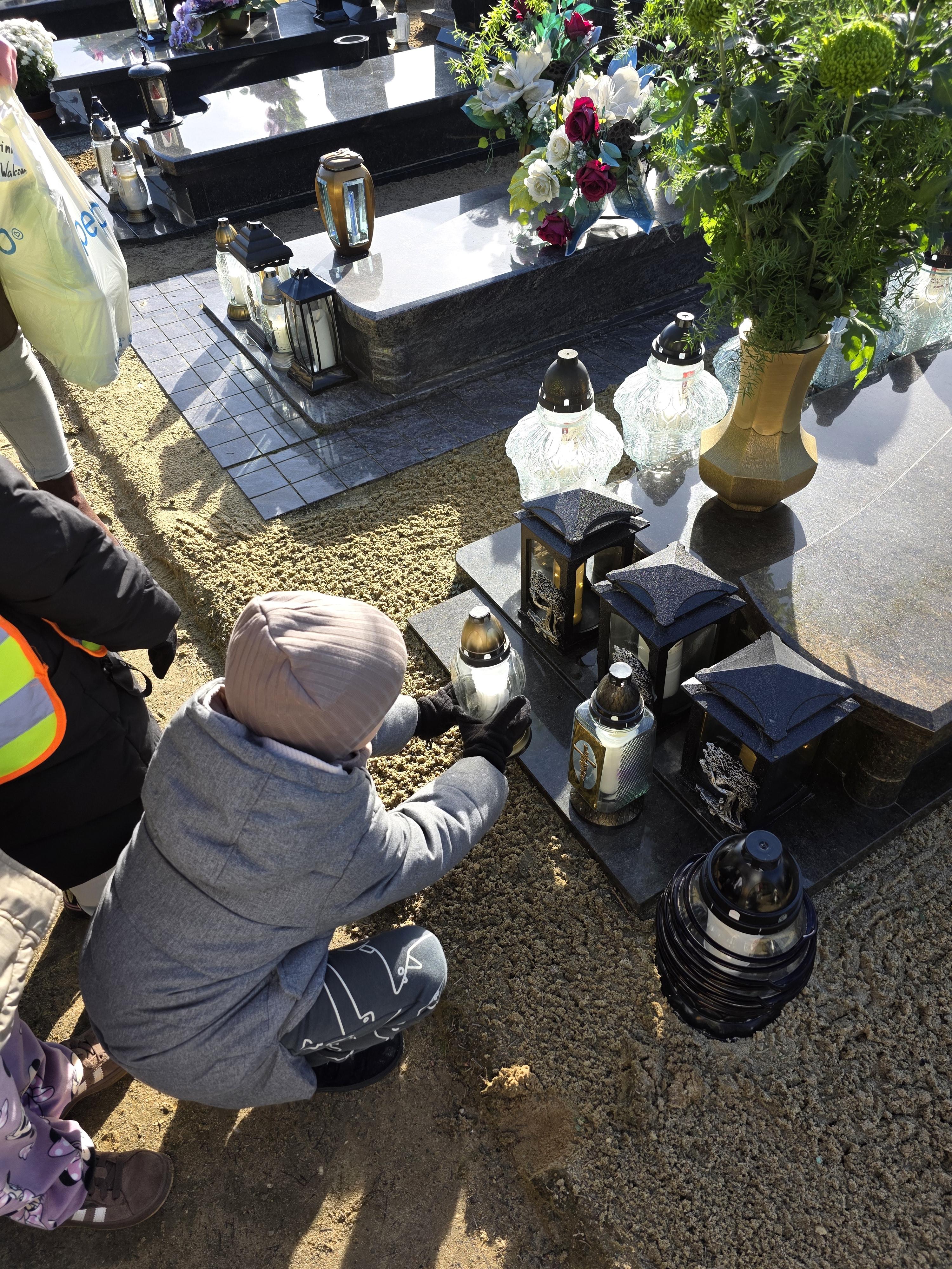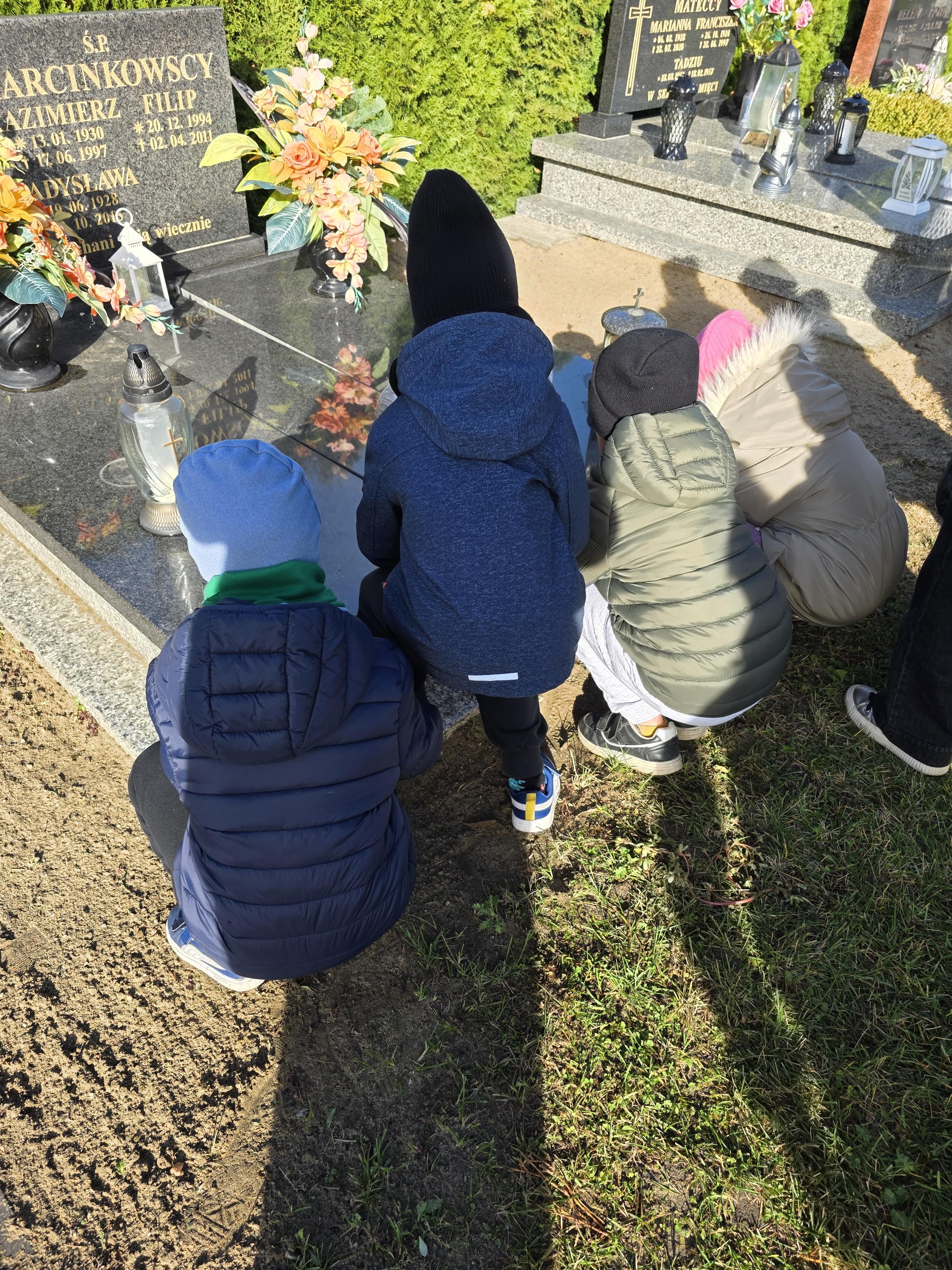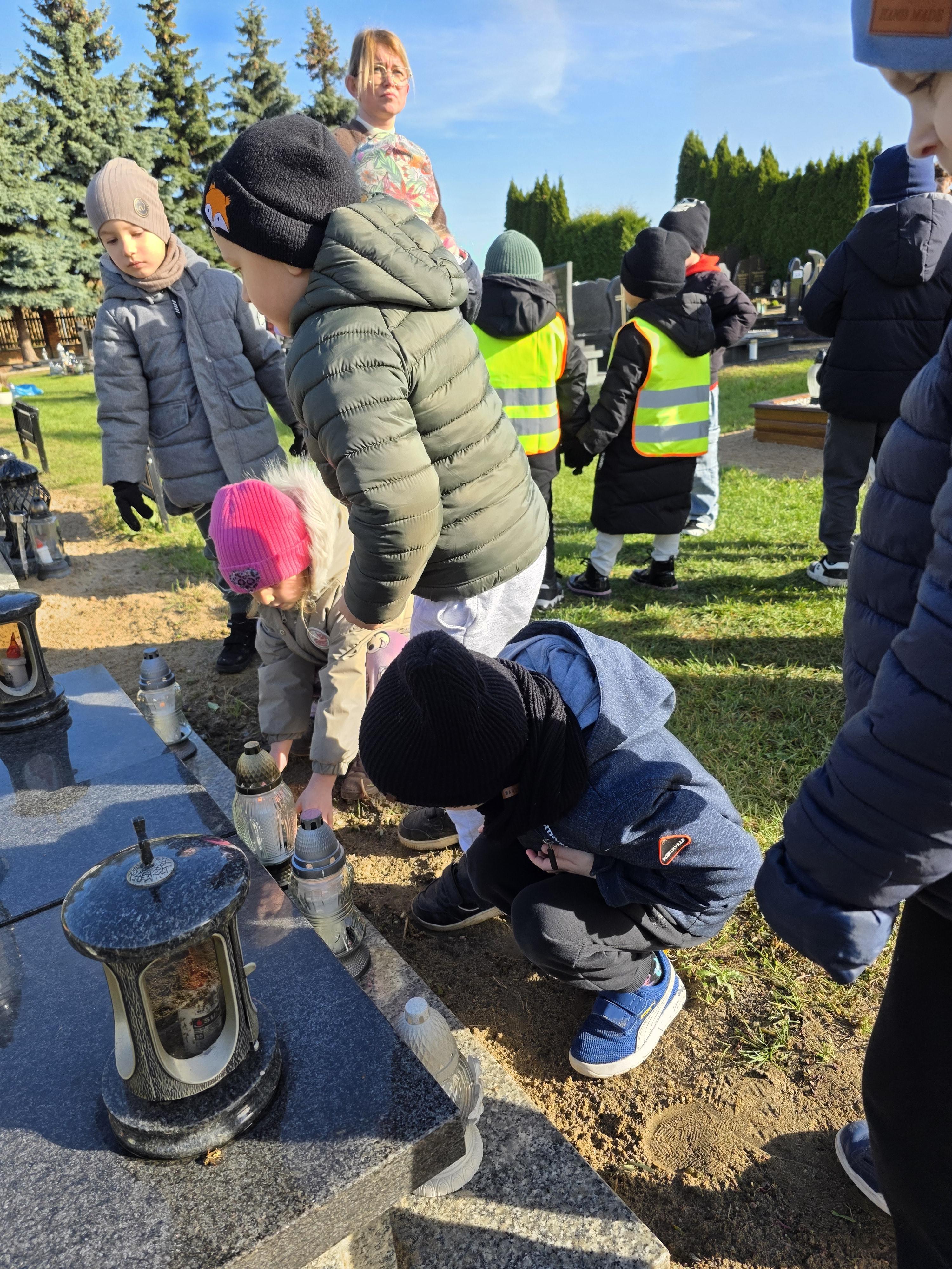 W piątek, 31 października grupa Stokrotki wybrała się na cmentarz w Pudliszkach. Dzieci odwiedziły groby zmarłych uczniów oraz pracowników przedszkola i zapaliły znicze.