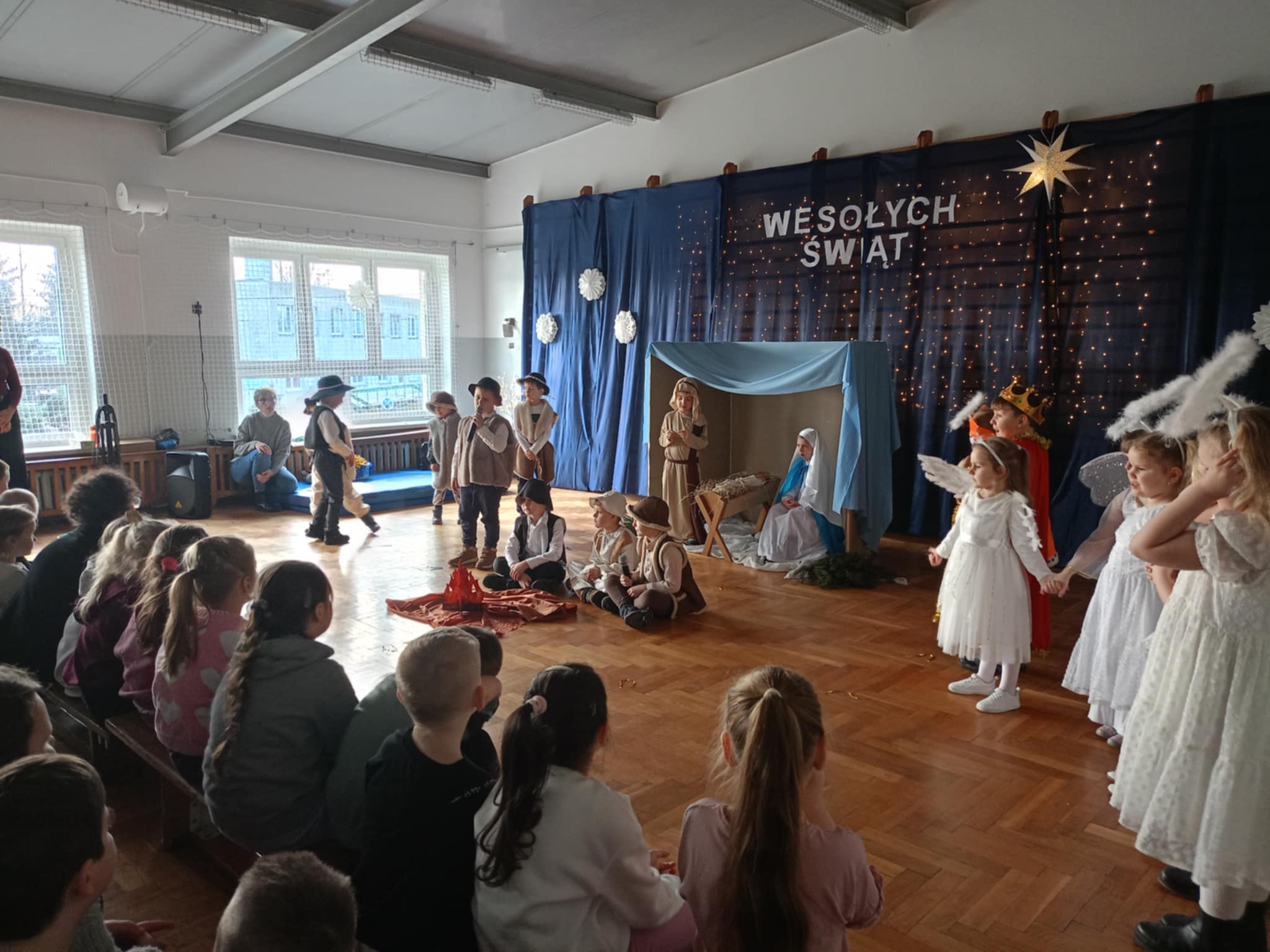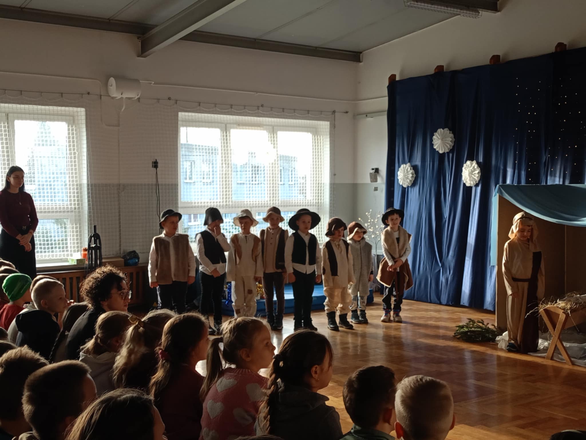 Każdy występ był wyjątkowy i nagradzany gromkimi brawami. Mali aktorzy z ogromnym zaangażowaniem wcielili się w swoje role, śpiewali kolędy, recytowali wiersze i z dumą prezentowali efekty swojej pracy. Jasełka stały się nie tylko piękną lekcją tradycji bożonarodzeniowych, ale także okazją do wspólnego przeżywania magii świąt, budowania więzi i dzielenia się radością z innymi.