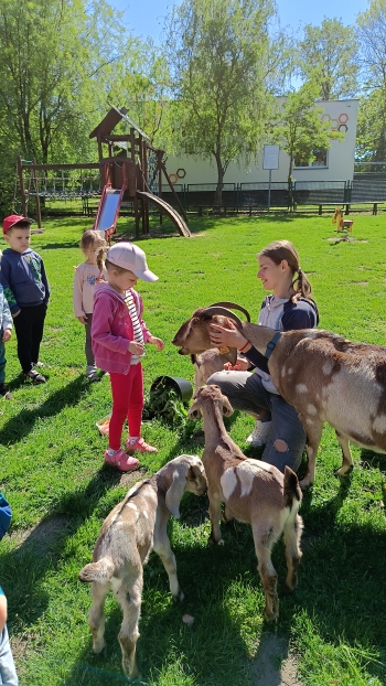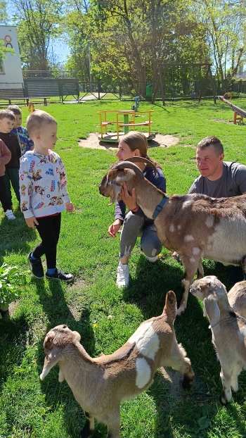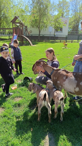 W miniony poniedziałek dzieci z grupy Biedronek odwiedzili rodzice Damiana z koza Adelka i jej kozletami. Przedszkolacy mieli okazję zobaczyć, nakarmić i pobawić się z niecodziennymi gośćmi. Bardzo dziękujemy państwu Matuszak za miłą niespodziankę która sprawiła dzieciom wiele radości.