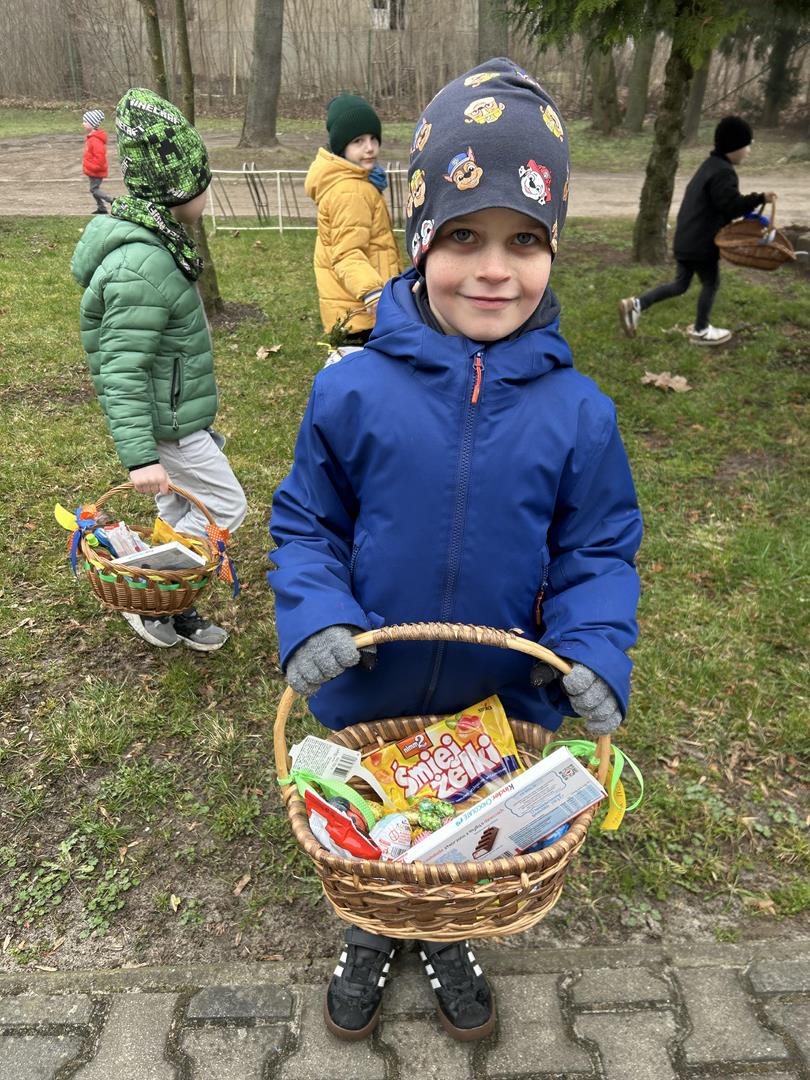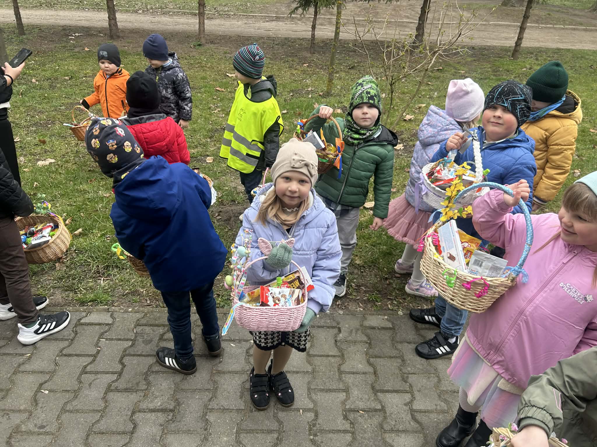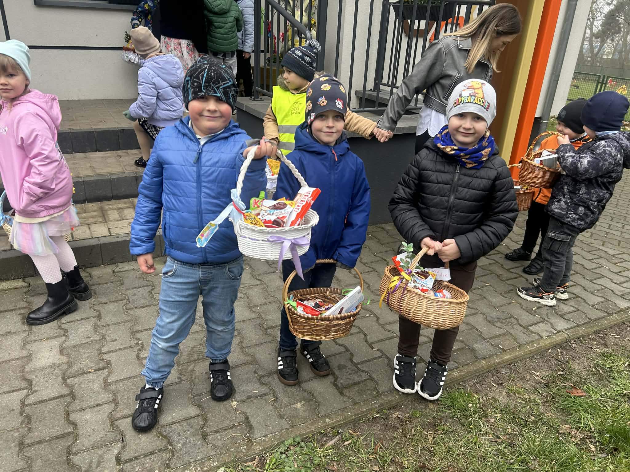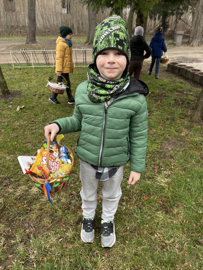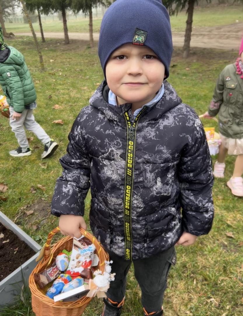 Na końcu tej pełnej emocji wyprawy czekała na nich niespodzianka – Zajączek zostawił dla dzieci koszyczki wypełnione słodkościami! Radość była ogromna, a uśmiechy nie znikały z twarzy przedszkolaków.
