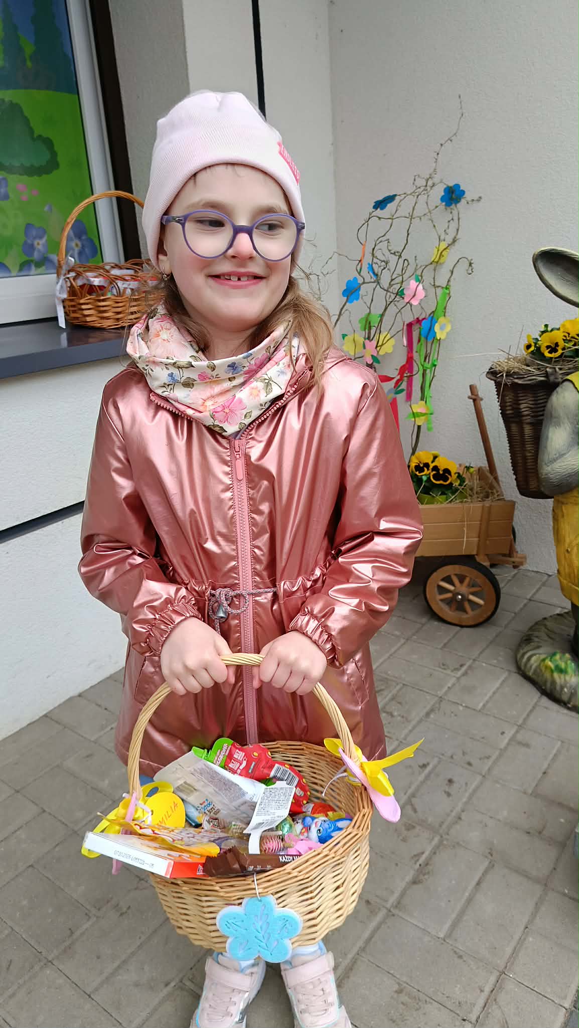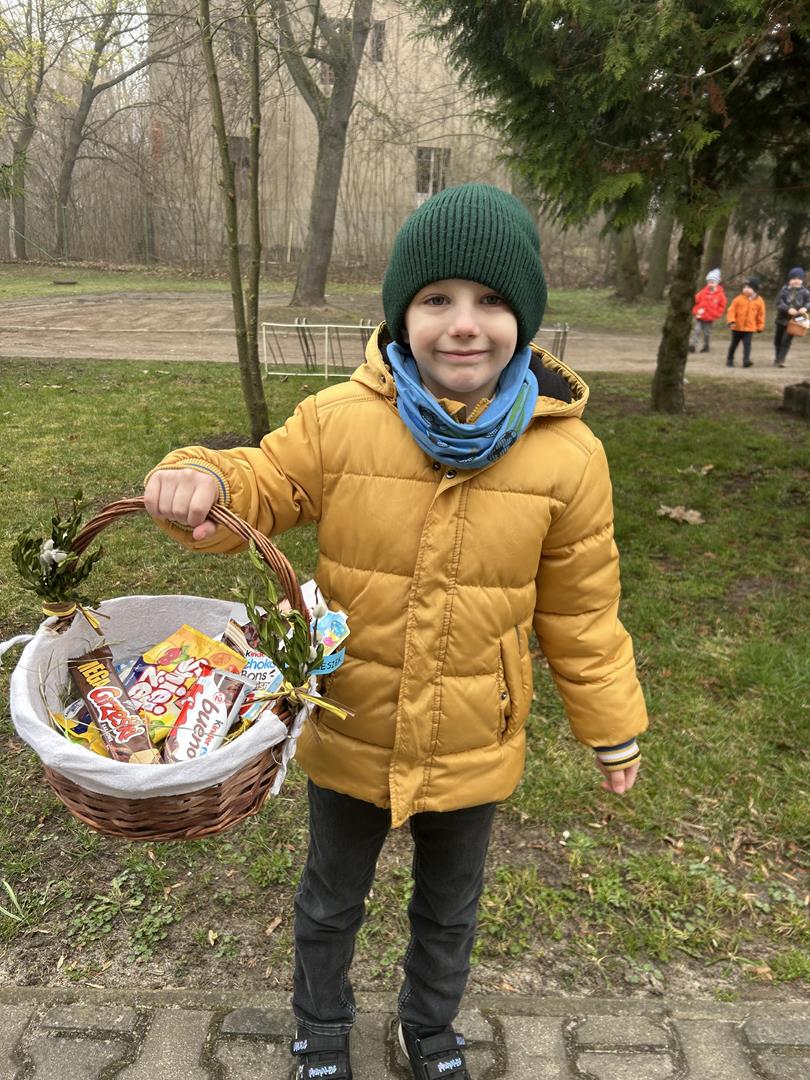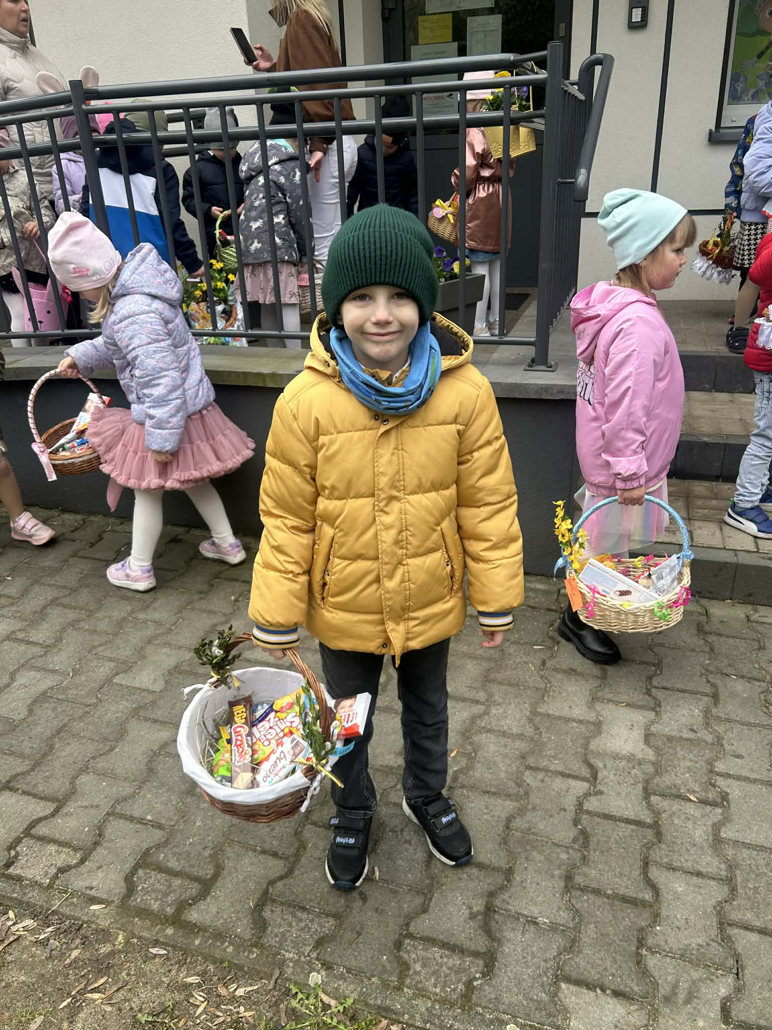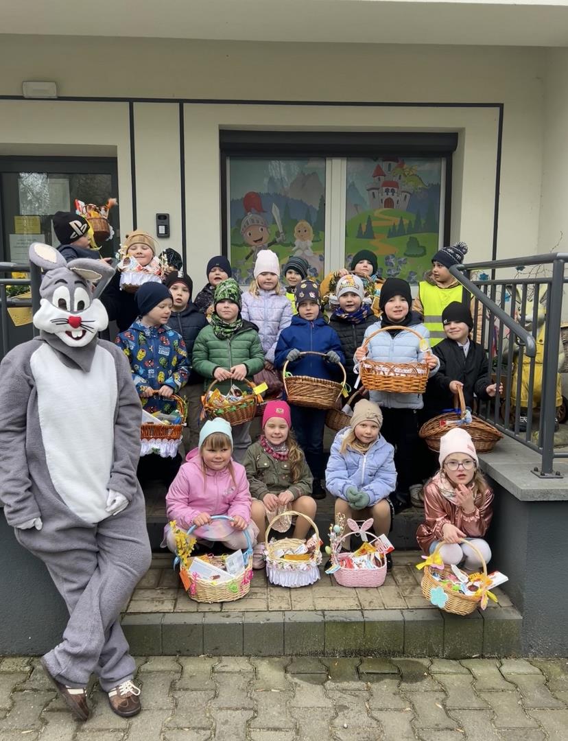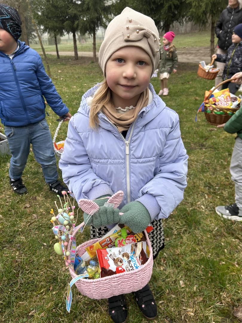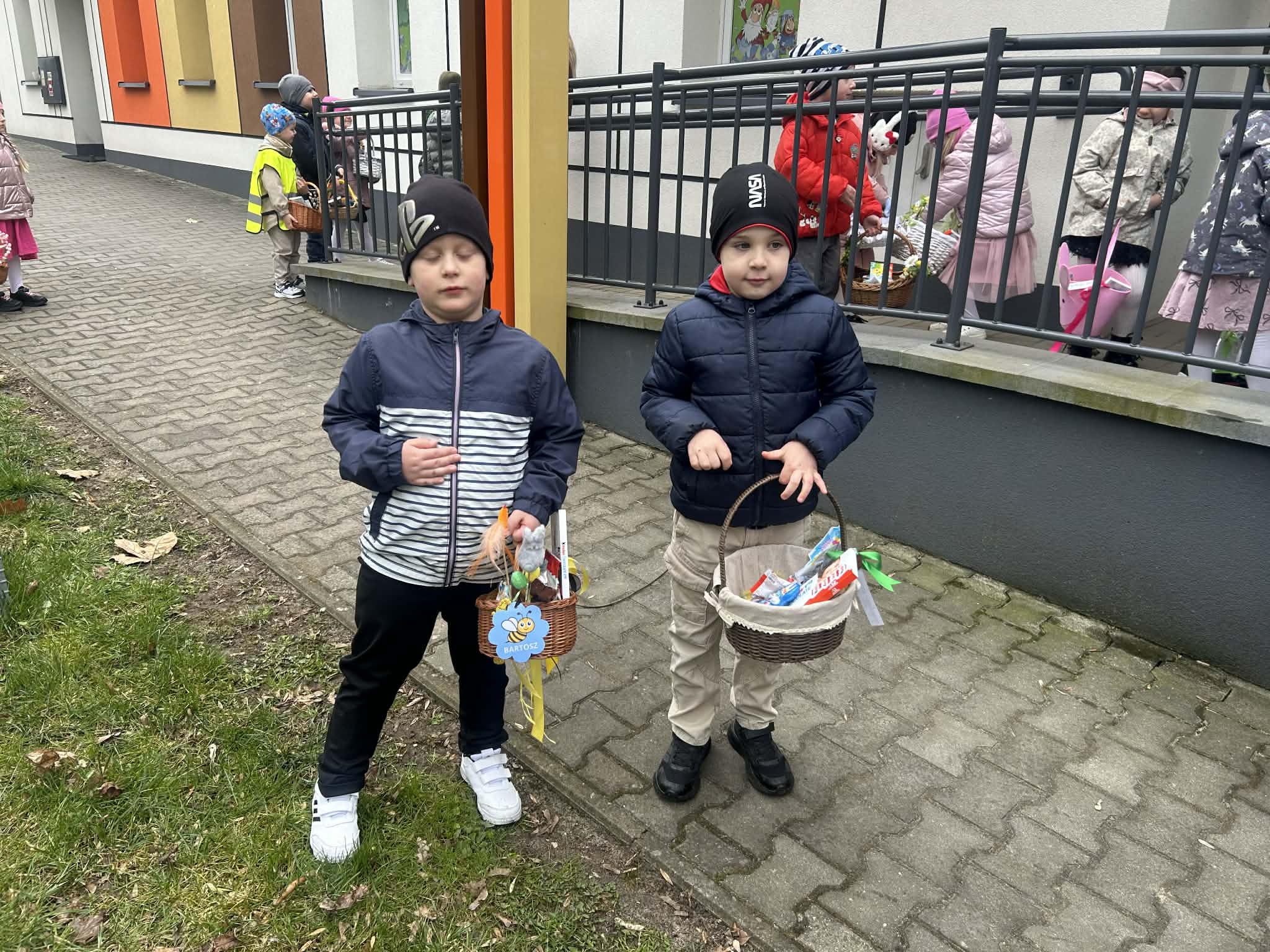 Na końcu tej pełnej emocji wyprawy czekała na nich niespodzianka – Zajączek zostawił dla dzieci koszyczki wypełnione słodkościami! Radość była ogromna, a uśmiechy nie znikały z twarzy przedszkolaków.