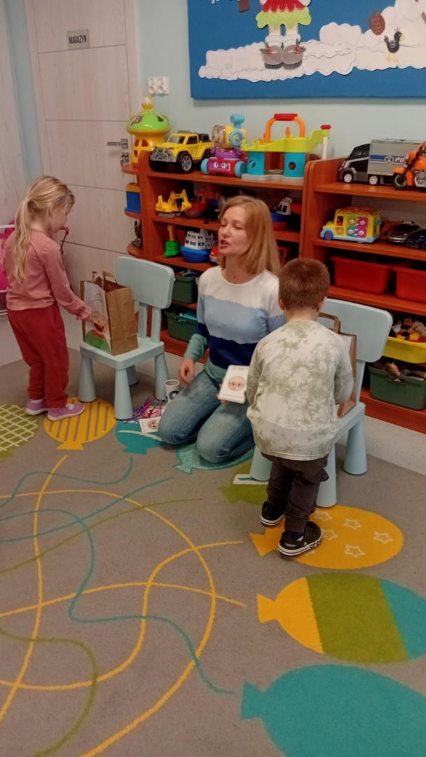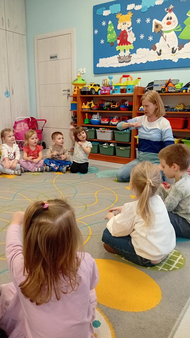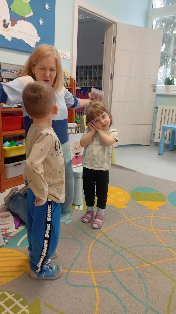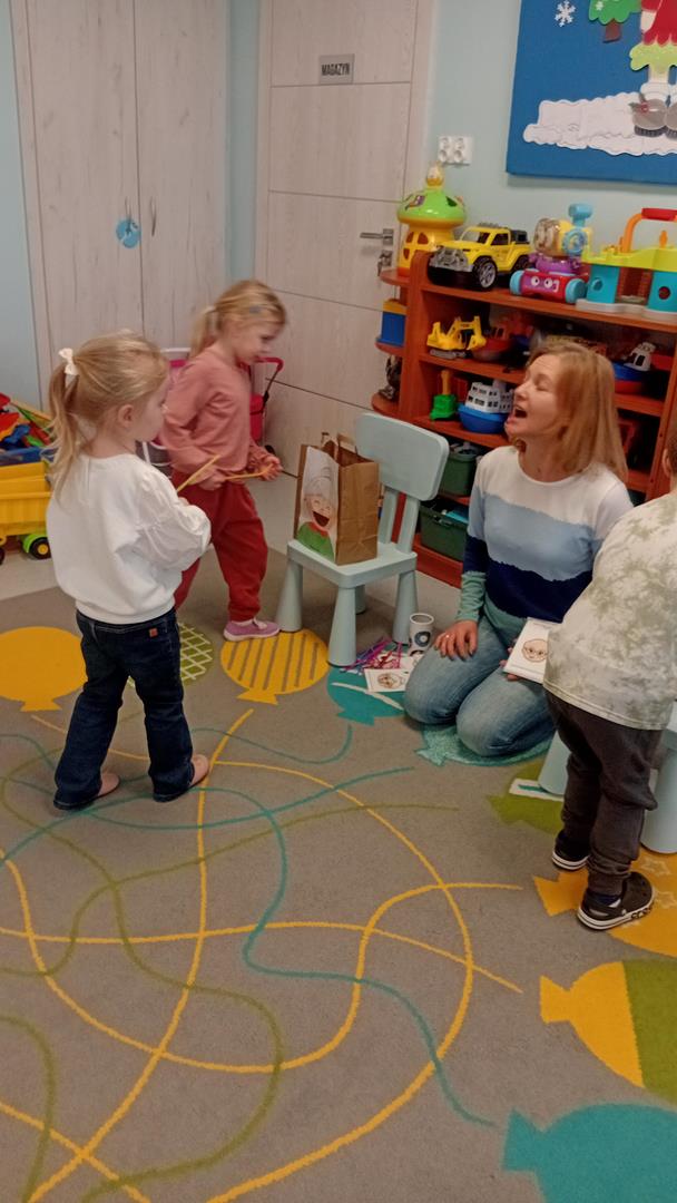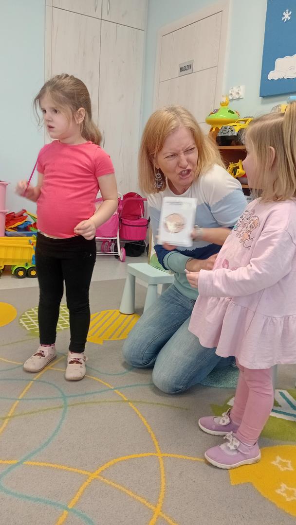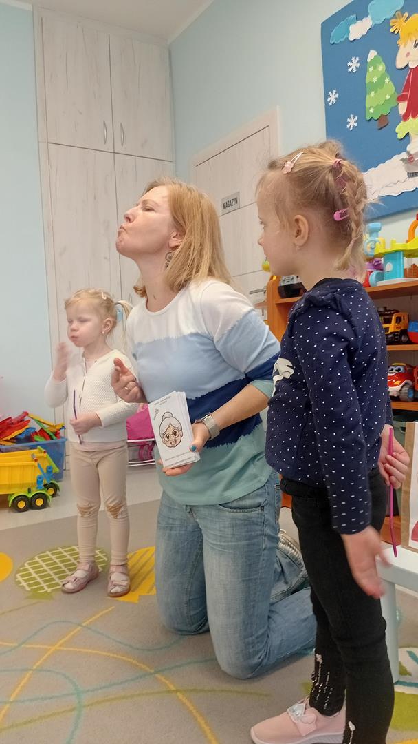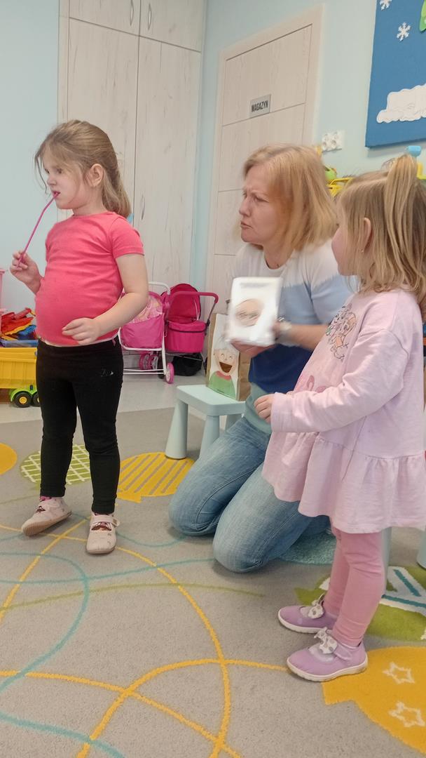 W tym tygodniu odwiedziała nas pani Karina, aby usprawnić narząd mowy. Dzieci z chęcią i uwagą wykonywały wszystkie zaproponowane ćwiczenia.