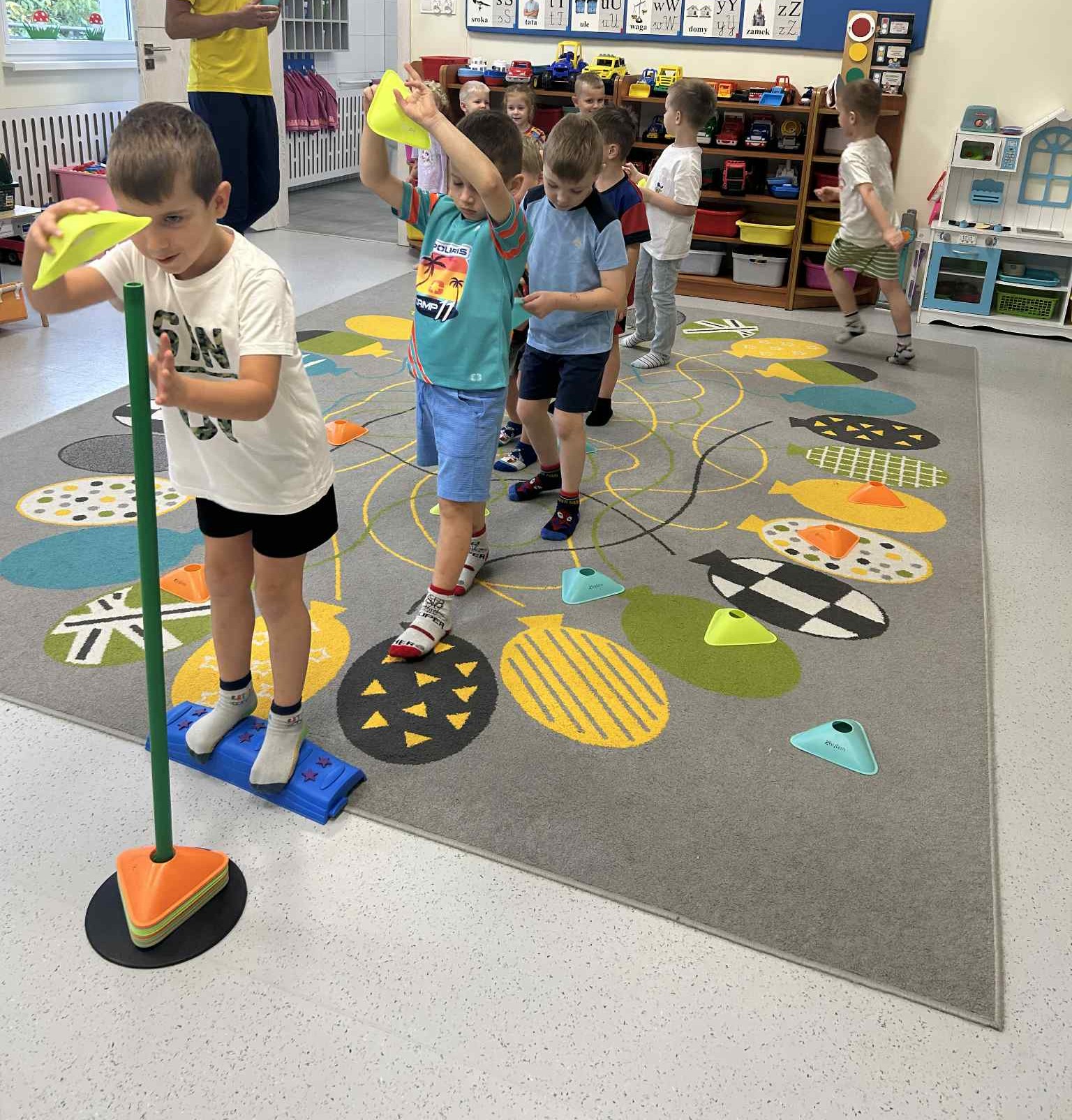 W październiku w naszej grupie odbywały się zajęcia ZVINNA.Dzieci aktywnie brały udział w różnorodnych ćwiczeniach sportowych i zabawach ruchowych, które wspierały rozwój koordynacji, równowagi oraz sprawności fizycznej.